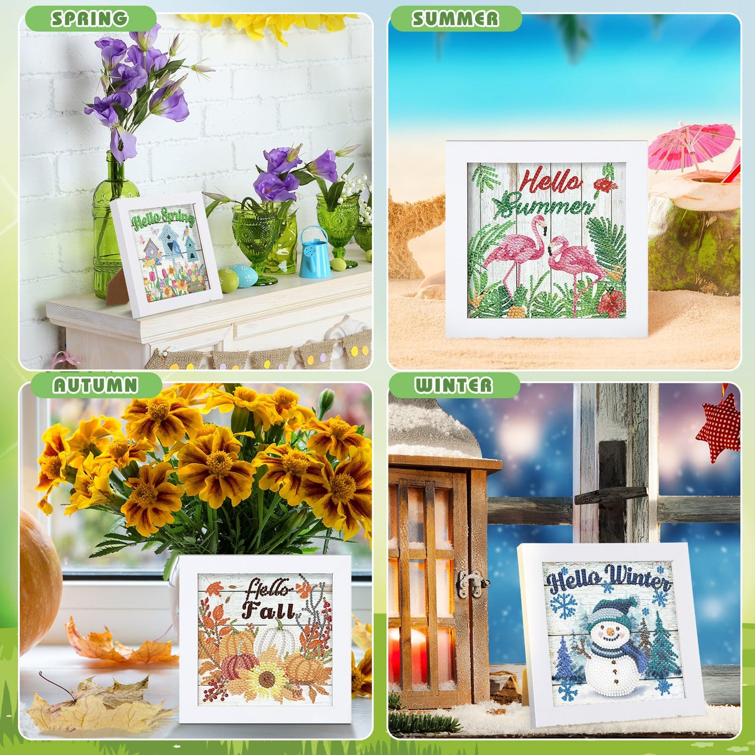 - Ideal Size: the seasonal diamond paintings art kits are ideally sized at 5.91 x 5.91 inches/ 15 x 15 cm, ideal for a cozy, personal space or a larger room; Complementing the paintings, sturdy wooden frames of 7.09 x 7.09 inches/ 18 x 18 cm, add an extra element of coziness, sophistication, and class