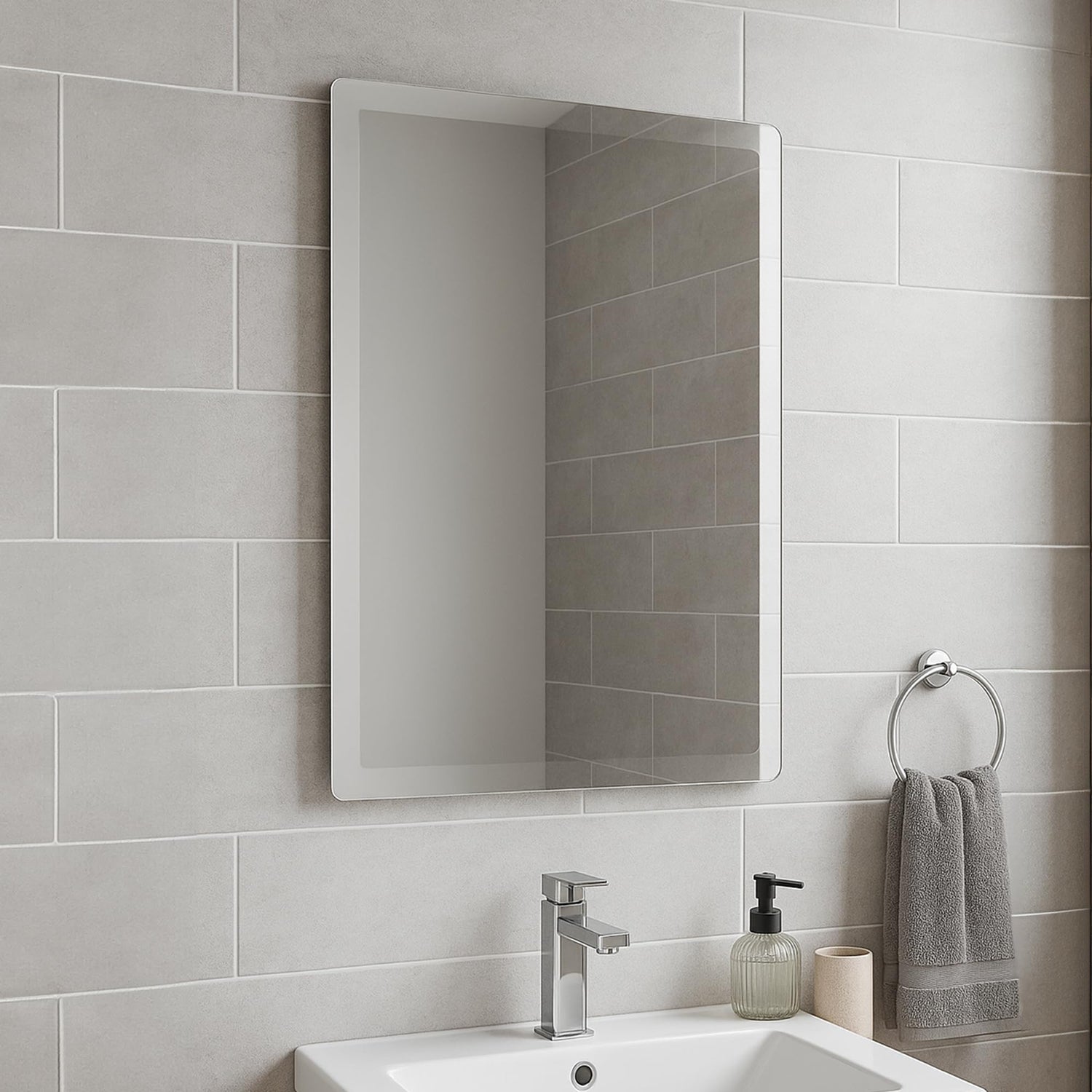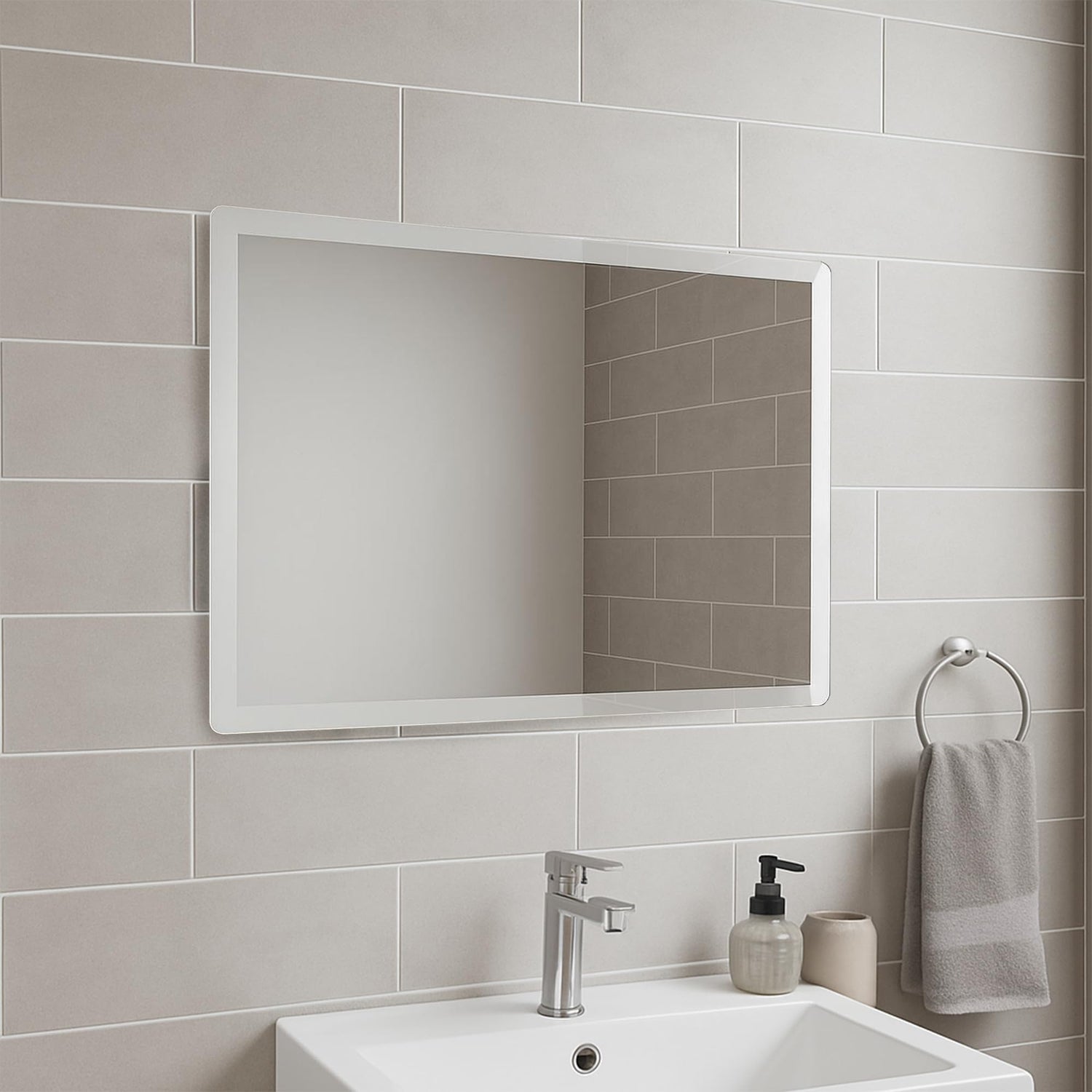 Tula Rectangular Bathroom Mirror | Frameless Bevelled Edge Design | Wall Mounted Portrait or Landscape 600mm x 450mm