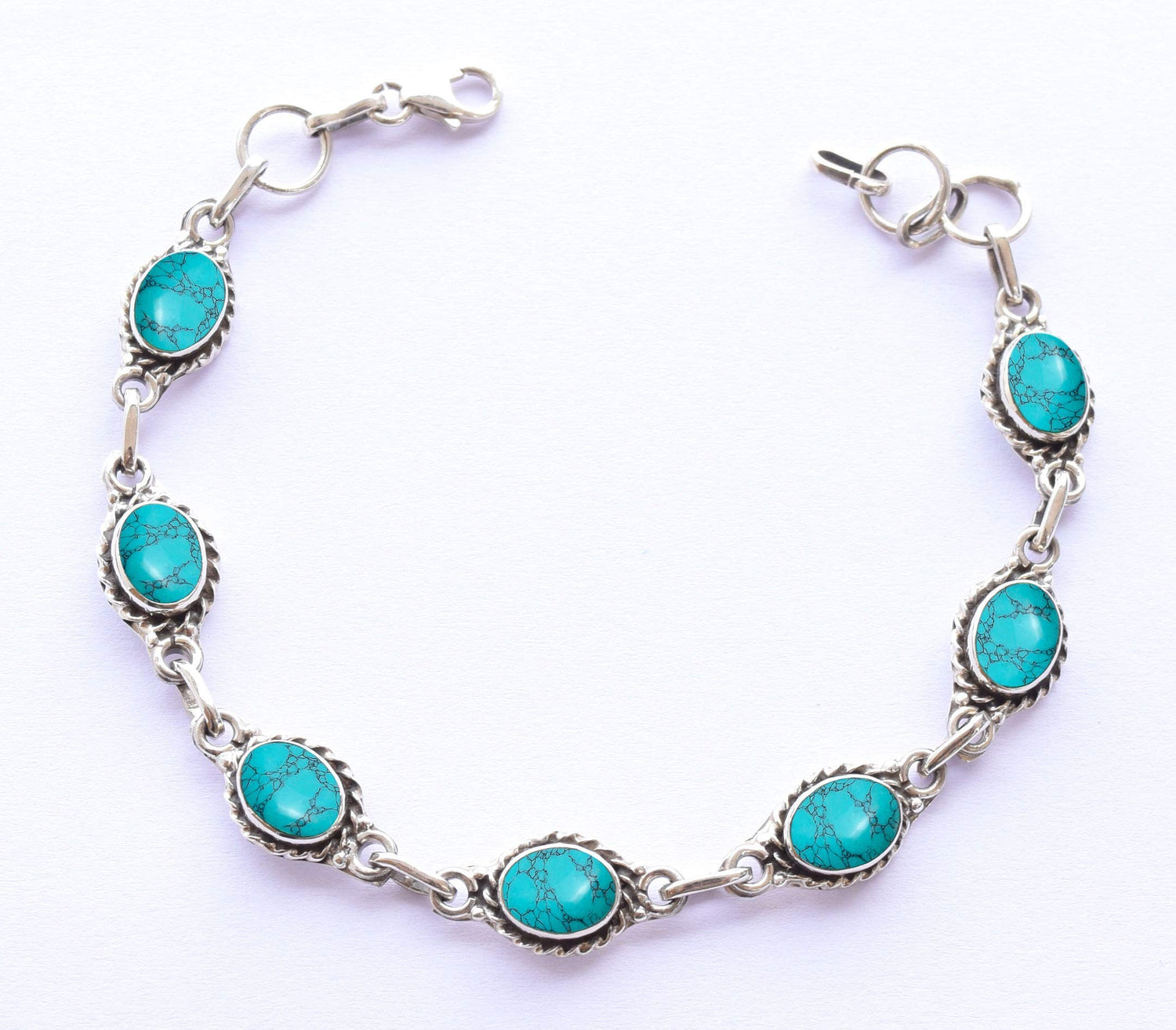 Turquoise Stone Bracelets Silver Overlay For Women Girl Gifts - Gemstone Adjustable Handmade Link Bracelets Christmas Gifts For Her