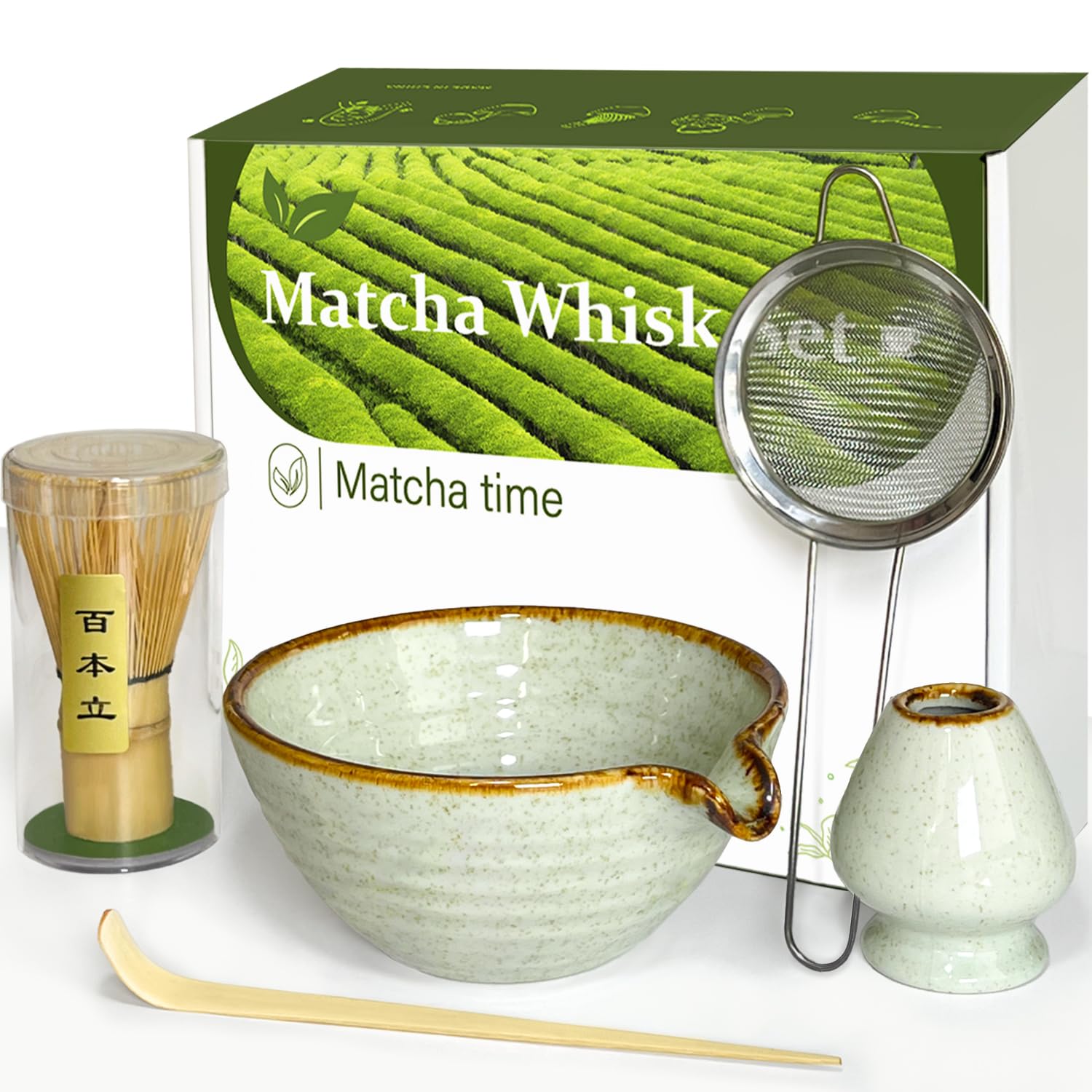 Vaiheng Matcha Whisk Set with Matcha Bowl, Matcha Whisk Holder Matcha Bamboo Whisk, Scoop, Sifter, Unique Gifts for Women Men Girl Friend Home Kitchen Decor Gifts for Tea Enthusiasts Christmas