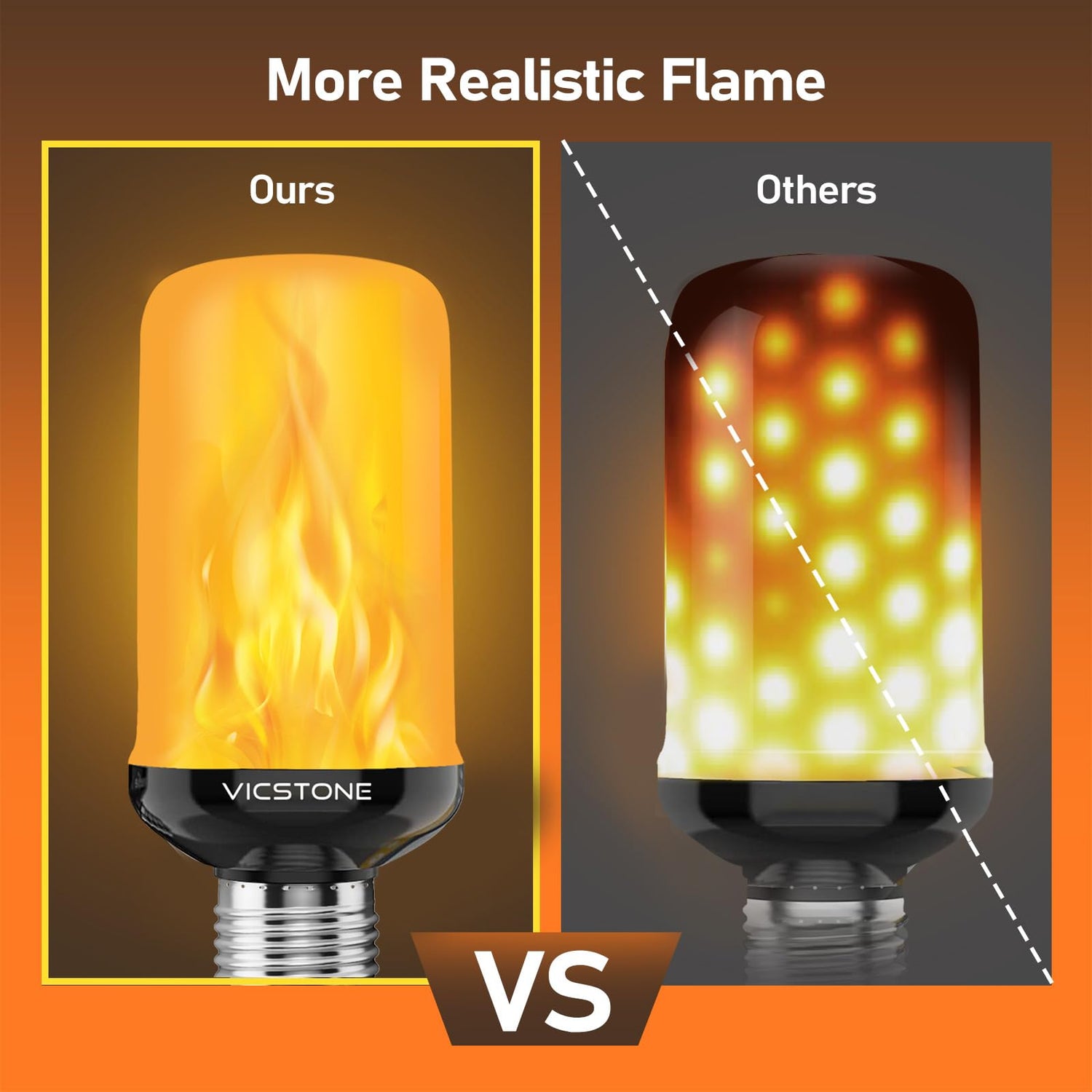 Vicstone Upgraded LED Flame Light Bulbs, 4-Mode Flickering Light Bulbs with Upside Down Effect, E26 27 Fire Light Bulb for Porch Party Patio Home Halloween Christmas Indoor Outdoor, 4 Pack