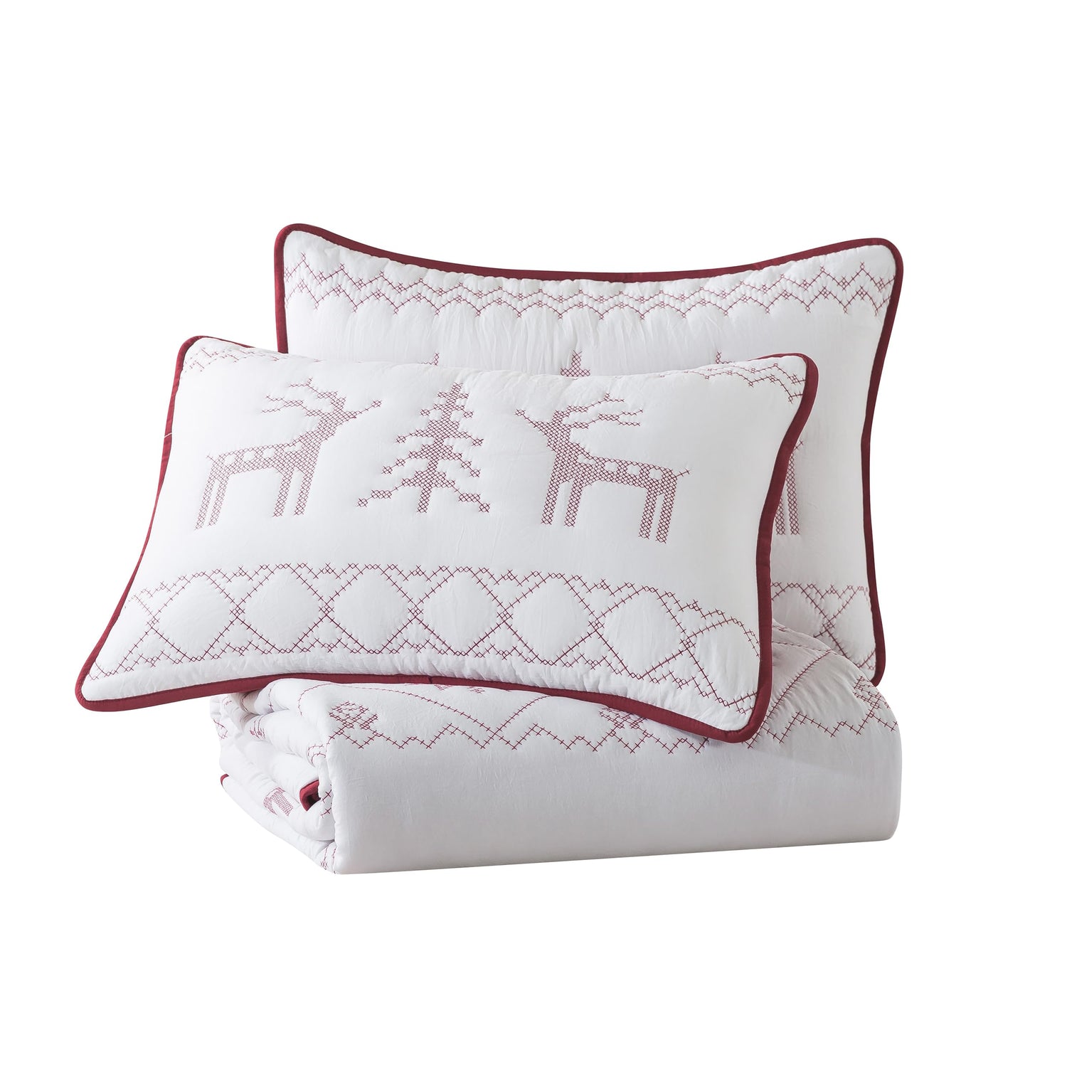 WDCOZY Red Christmas Oversized California King Size Quilt Bedding Sets with Pillow Shams, Cal King Soft Lightweight Bedspread Coverlet, 3 Pieces, 118x106 inches