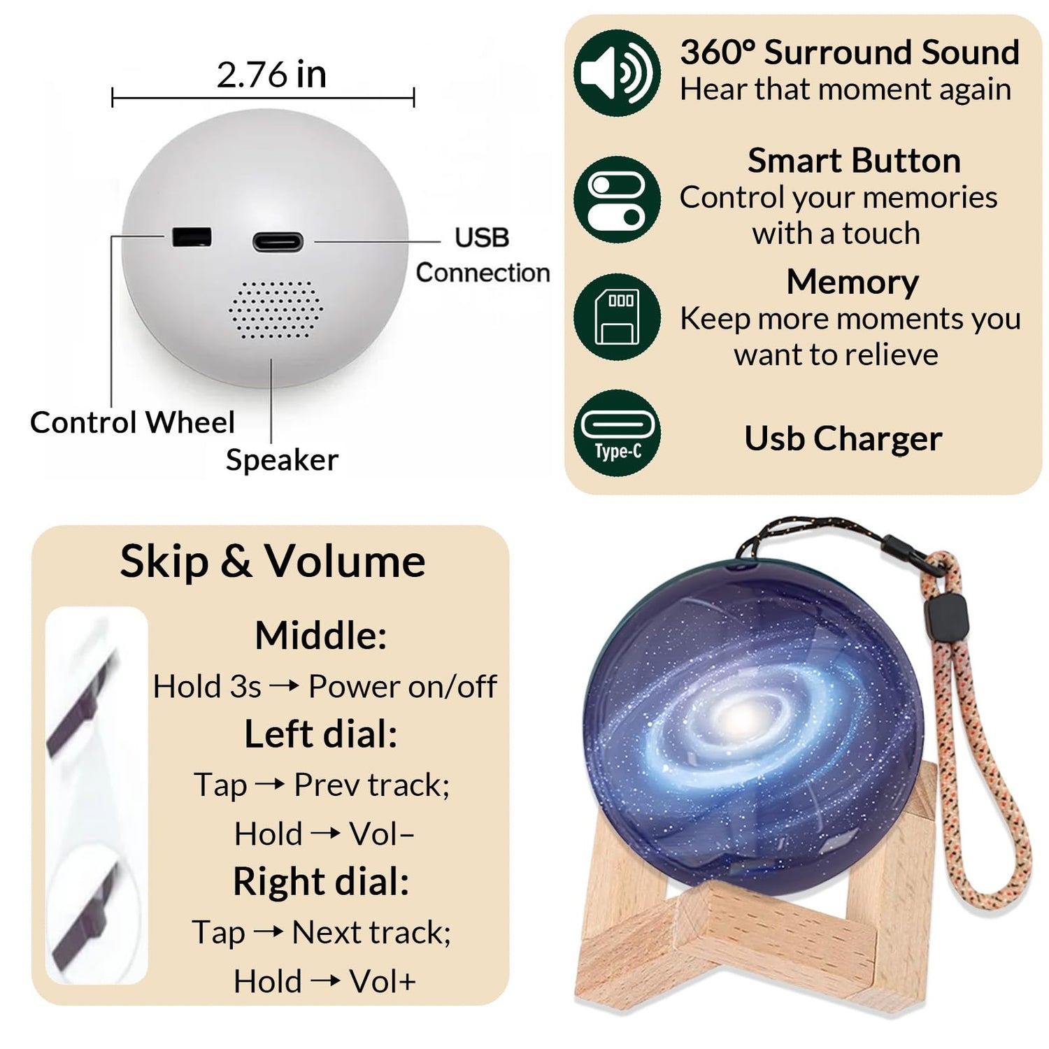 - Quality Sound: This Memory Sphere Lamp Is Also A Video Player Delivering Excellent Audio. Relive Moments Inside The Memory Sphere Crystal Ball With Clear Sound