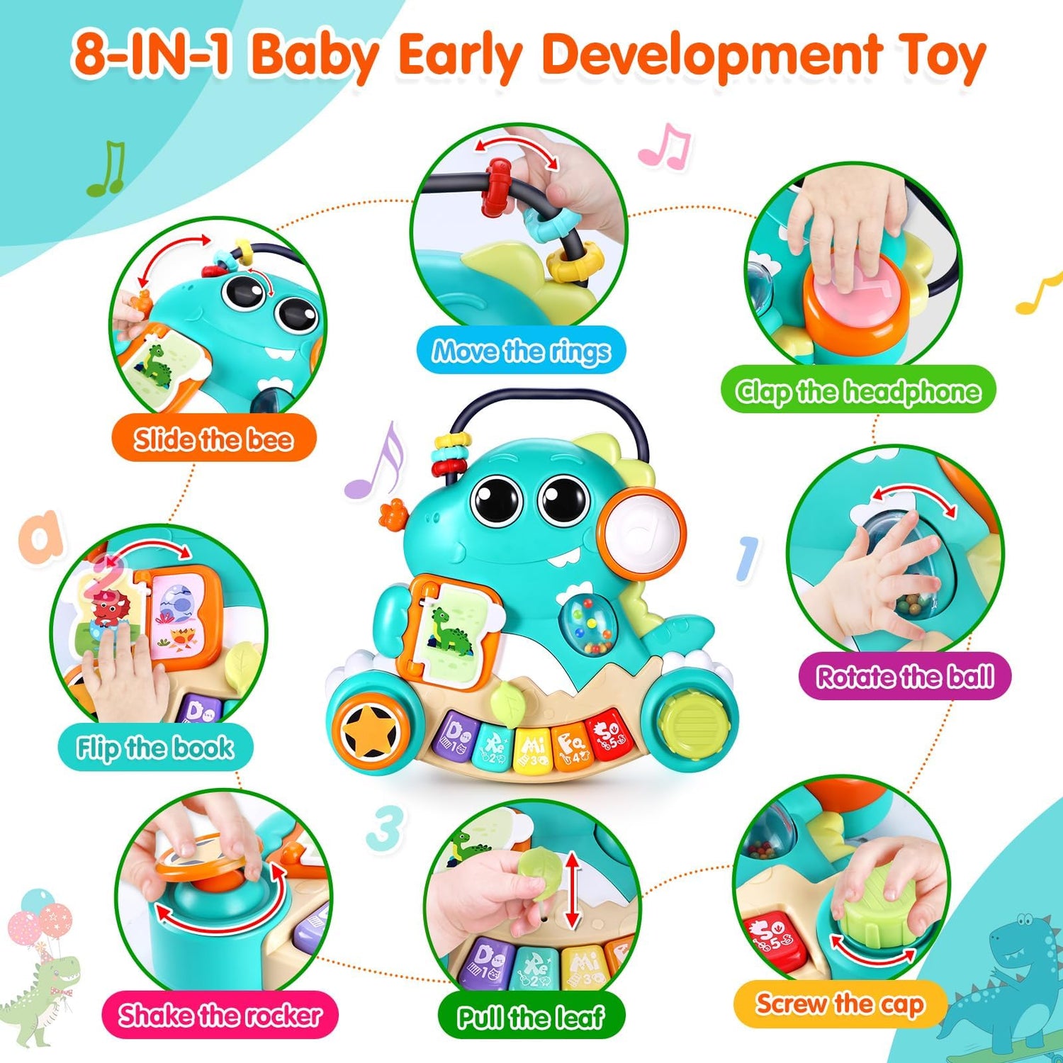 - SO MUCH TO DSICOVER, BABY' S FAVORITE TOYS: Baby toys 12-18 months covers all of the bases for satisfying most babies. There are strings to pull and bead-filled cylinders to roll and keys to play like a piano, slide the bee, the eyes of dino toddler boy toys will roll, and play funny sounds to make your baby laugh. So many options keep your baby occupied for hours . Interactive and playful toys for 1 year old boy, supply baby with healthy entertainment.