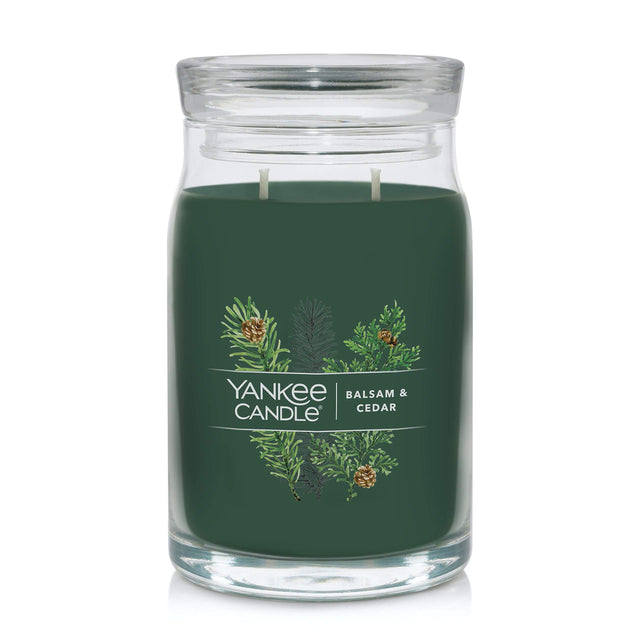 Yankee Candle Balsam & Cedar Scented Signature 20oz Large Jar 2-Wick Candle Over 60 Hours of Burn Time Christmas | Holiday
