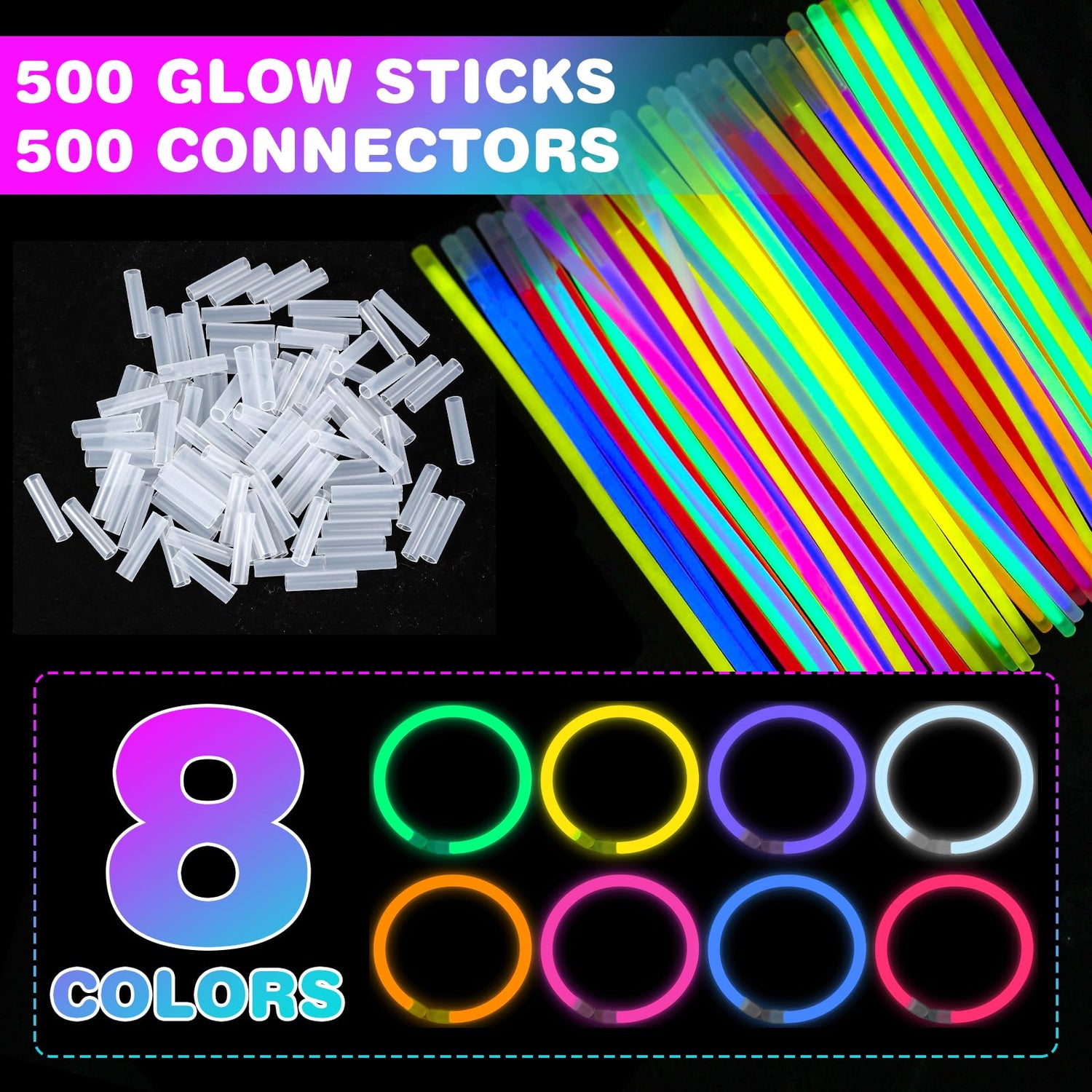 - Glow Stick Party Pack Includes: 500 pcs 8 inch colorful easy-to-activate glow sticks and 500 pcs sturdy and reliable connectors to light up the party. More quantity can be used more times