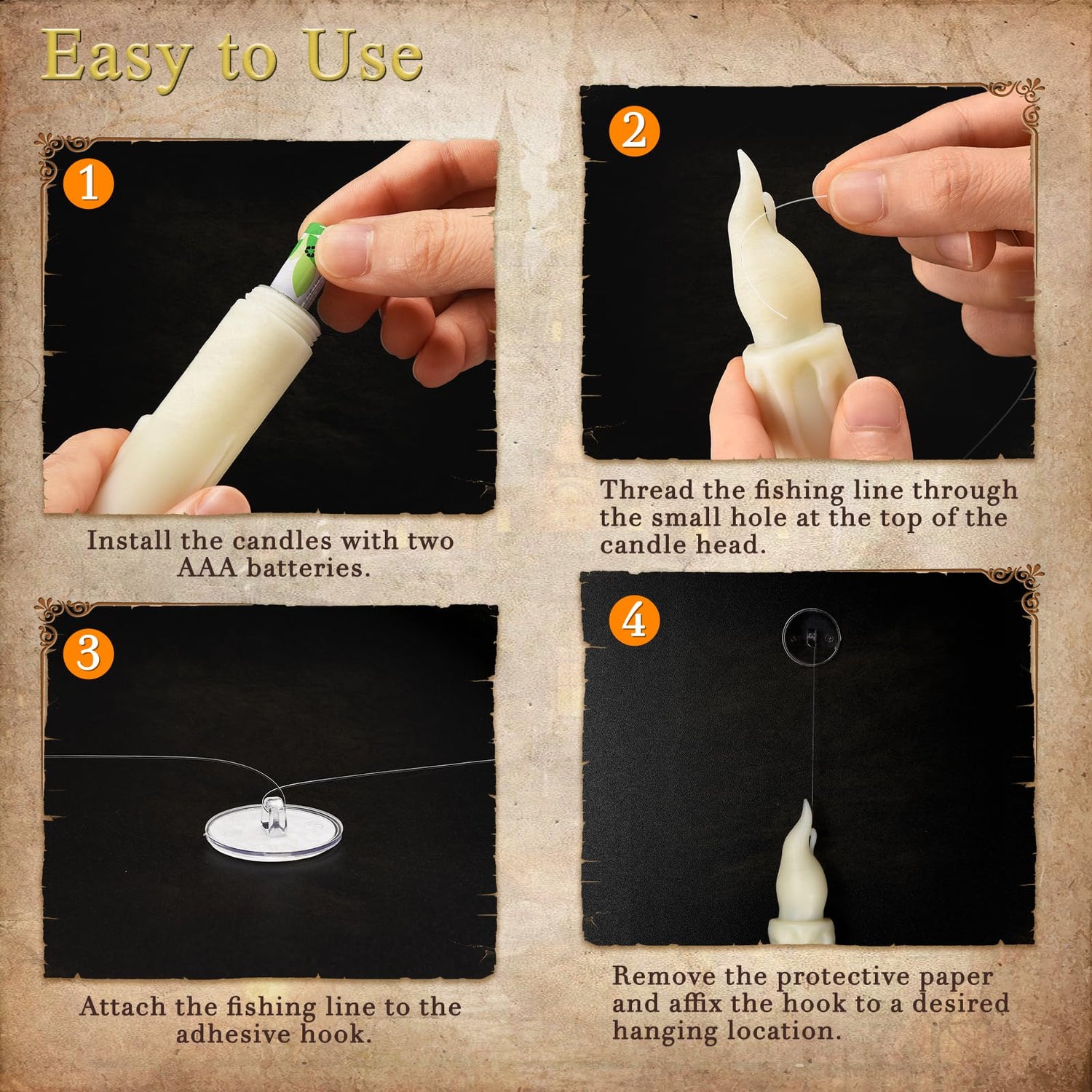 - 【Elevate Every Space】 Simply attach the candle using the fishing line and effortlessly suspend it in your preferred spot using hooks to achieve a captivating "floating" candle illusion. Unleash the magic of our LED floating candles for a captivating ambiance, and transform ordinary spaces into extraordinary realms of wonder, perfect room decor for Halloween, Christmas, church services, window candles, the fireplace, table, home & outdoor decoration.
