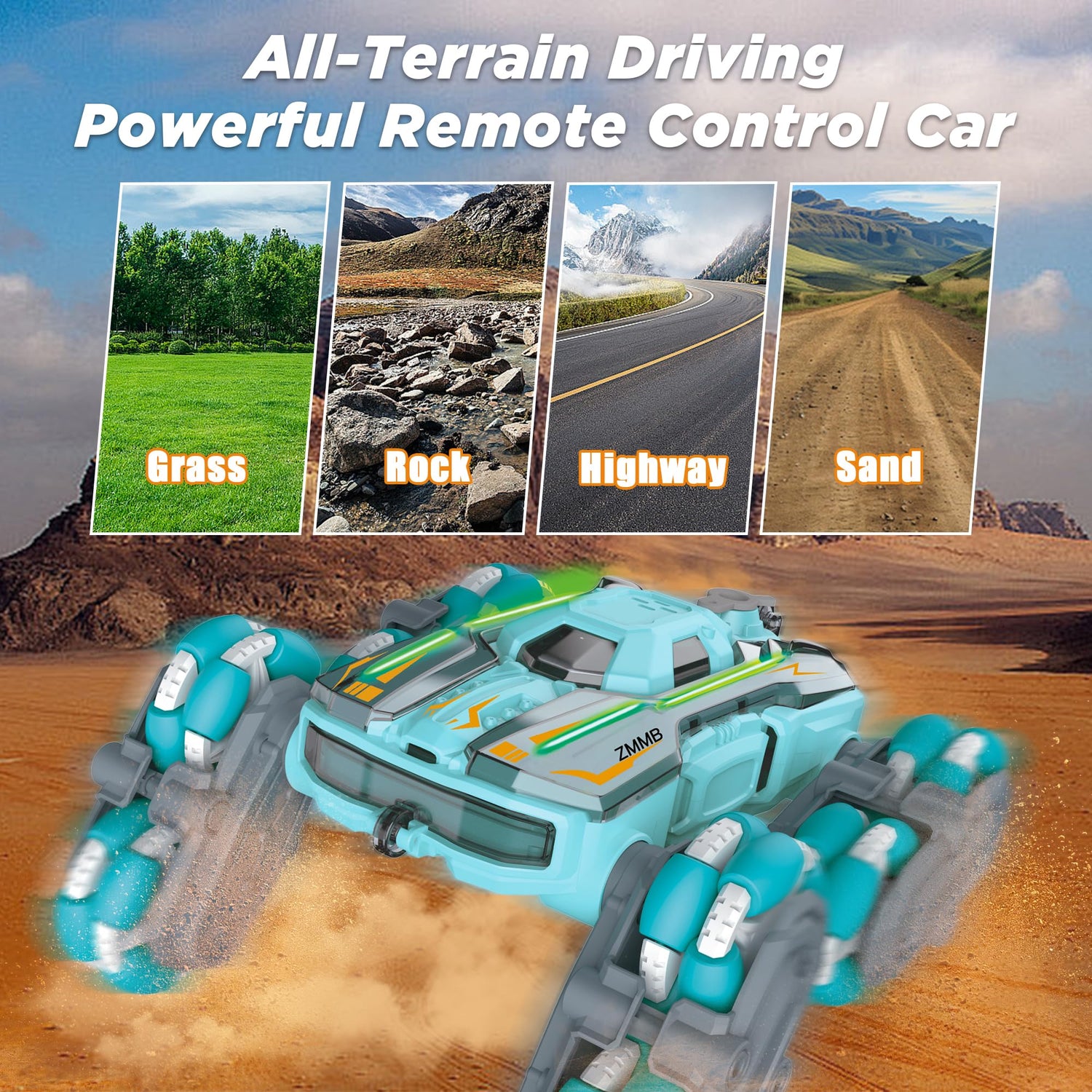 ZMMB 8 Wheel RC Stunt Car with Gesture Control, Spray & LED Lights, Double-Sided Off-Road Vehicle for Boys & Girls Ages 6-14, Ideal Christmas & Birthday Gift
