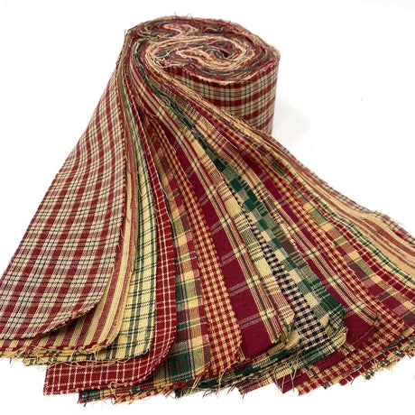 Vintage Christmas Homespun Cotton Red Green Fabric 22 pc 2.5" X 44" Precut Roll (Jelly Roll) by JCS