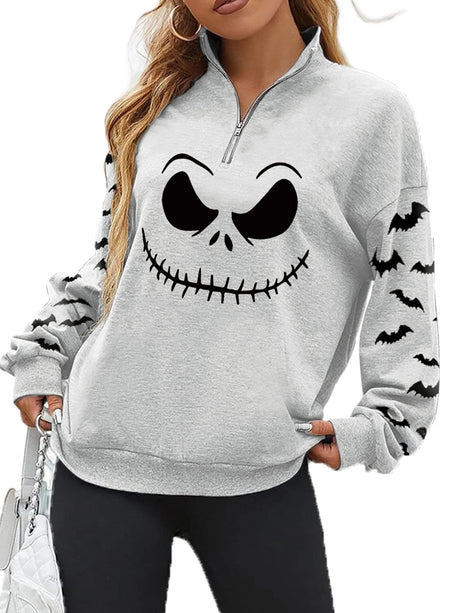 tiqwova Womens Halloween Pumpkin Face Sweatshirt Loose Casual Christmas Shirt for Women (N01-L)