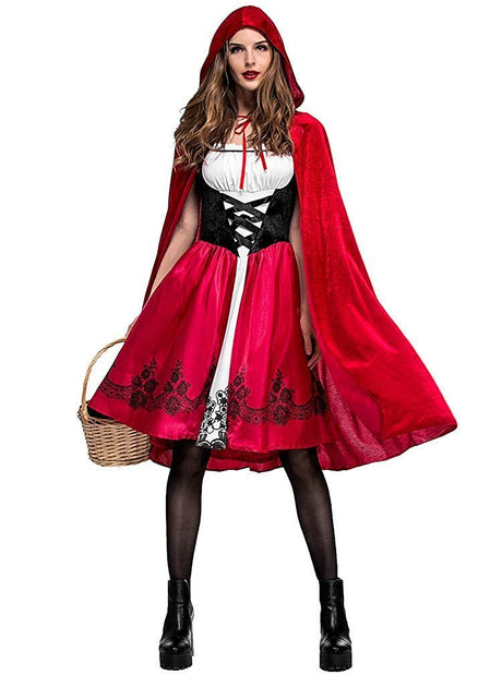 Simplecc Women Little Red Riding Hood Costume Christmas Halloween Party Dress with Cape Medium