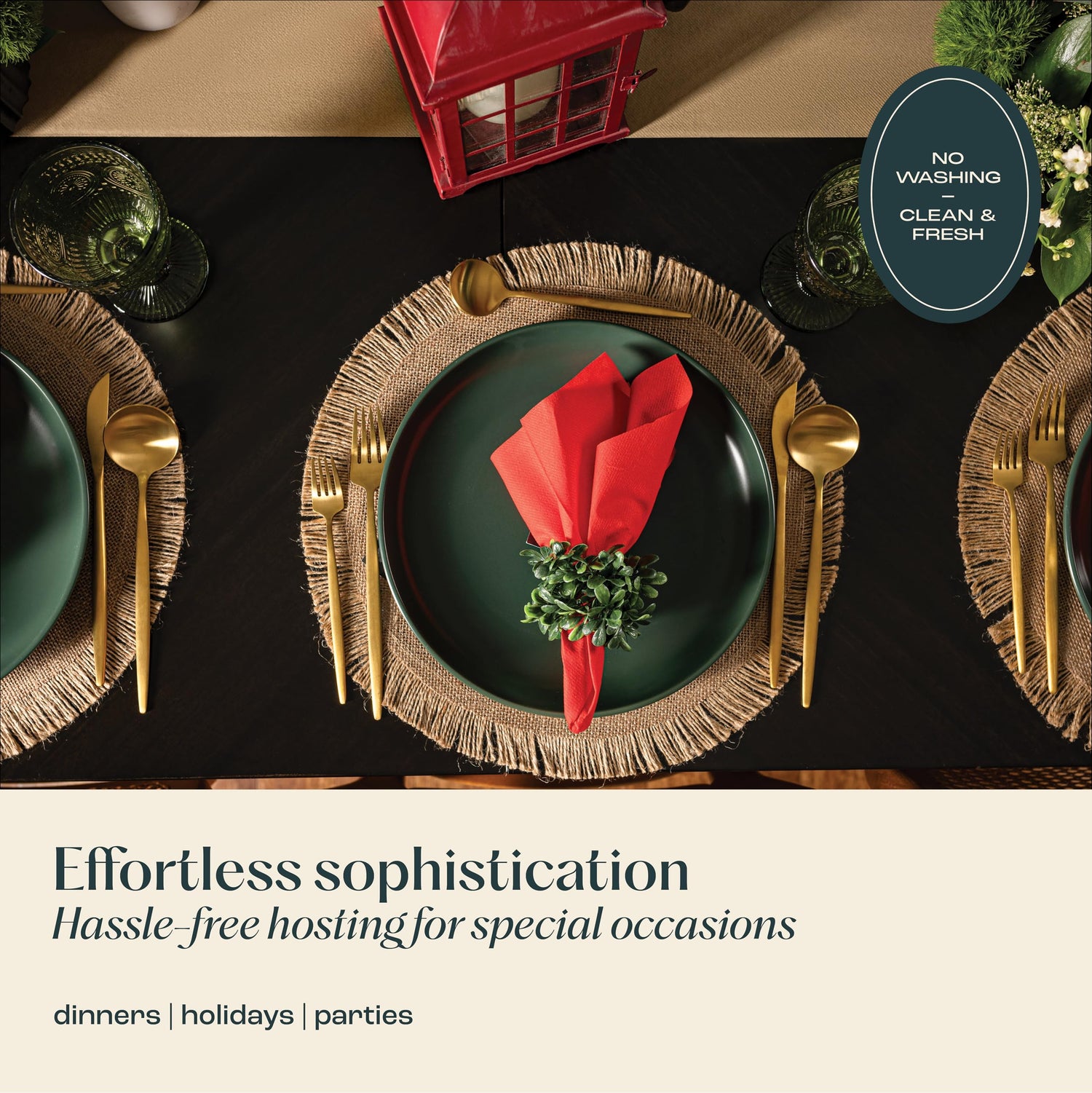 - PREMIUM QUALITY DECORATIVE LINEN-LIKE NAPKINS: Enjoy the luxurious feel of our disposable guest towel napkins, designed to mimic the texture and softness of linen for an upscale dining experience.