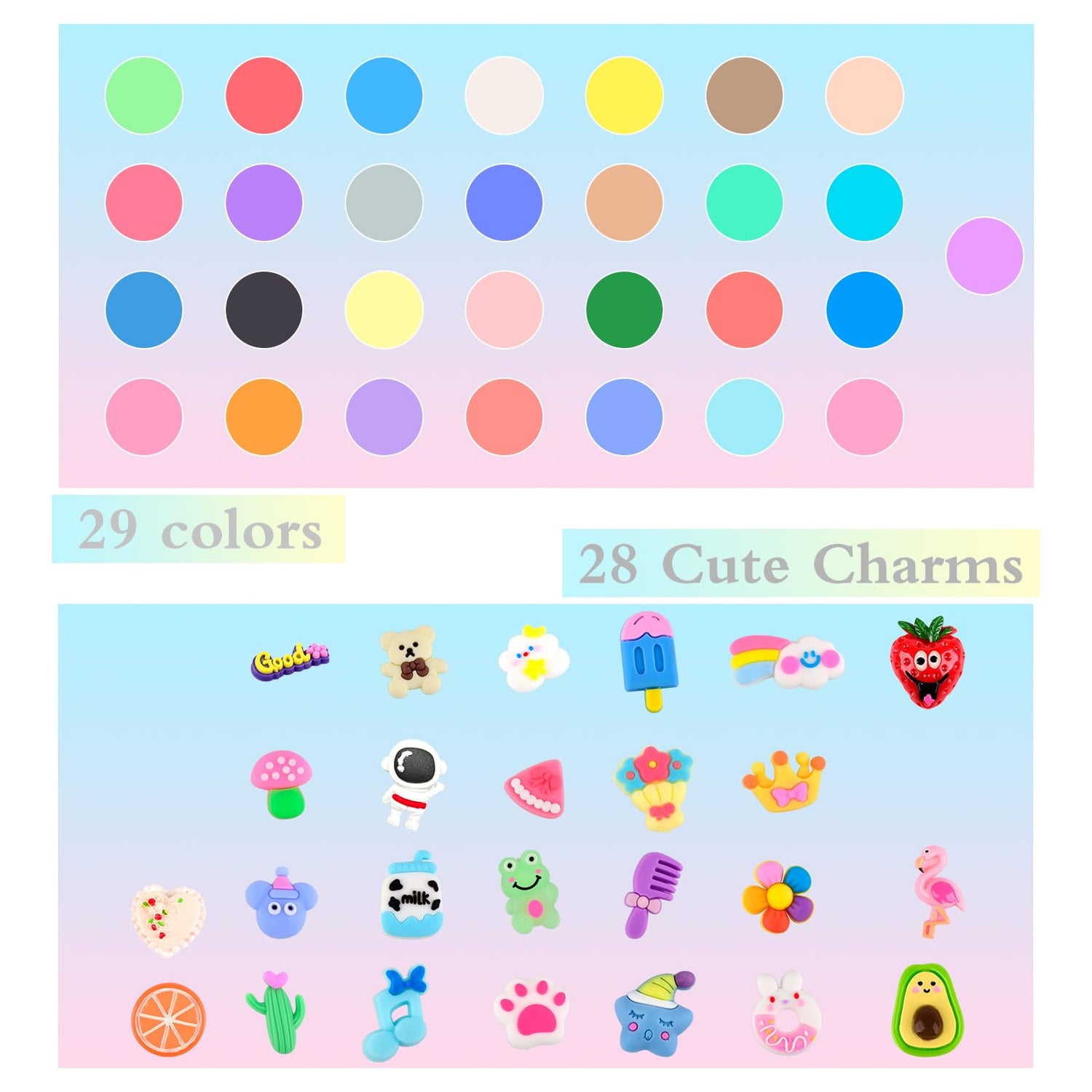 - 🌼Butter Slime Kit: The mini slime kit includes (58*30ml) 58 packs of slime toys, 29 colors, 28 Slime charms,4 of butter slime stickers, 1 pack of cute pieces, 1 packs of slime decorations, 1 beautiful gift box.