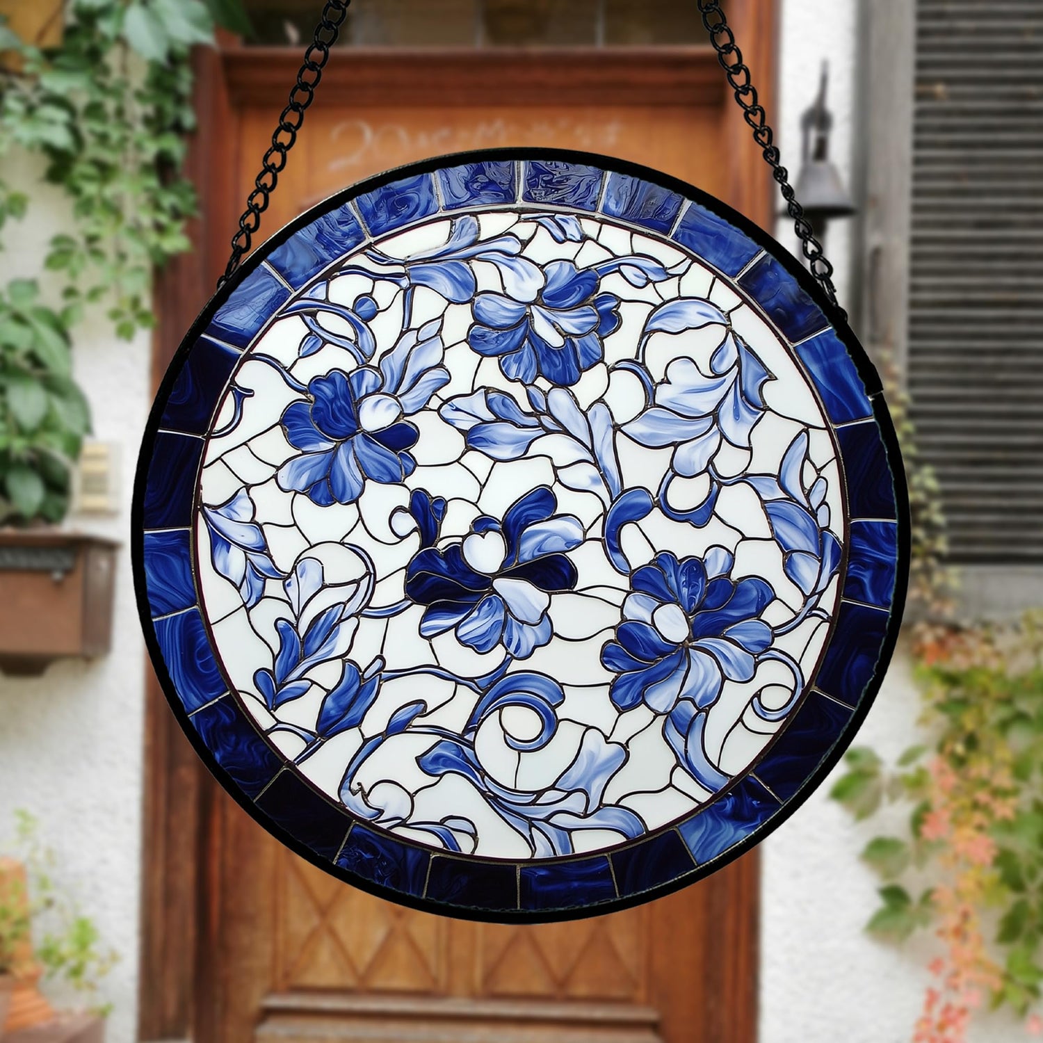 AMDERVEN Stained Glass Window Hanging, Blue and White Abstract Flowers Sun Catcher for Door Home Decor Suncatcher Christmas Mother's Day Birthday Gifts for Women Men Mom and Nana 9.8 in