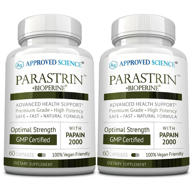 Approved Science Approved Science Parastrin - 120 Capsules - Cleanse and Improve Gut Health - Black Walnut, Garlic Bulb, Papain 2000, BioPerine - Vegan is backordered and will ship as soon as it is back in stock.