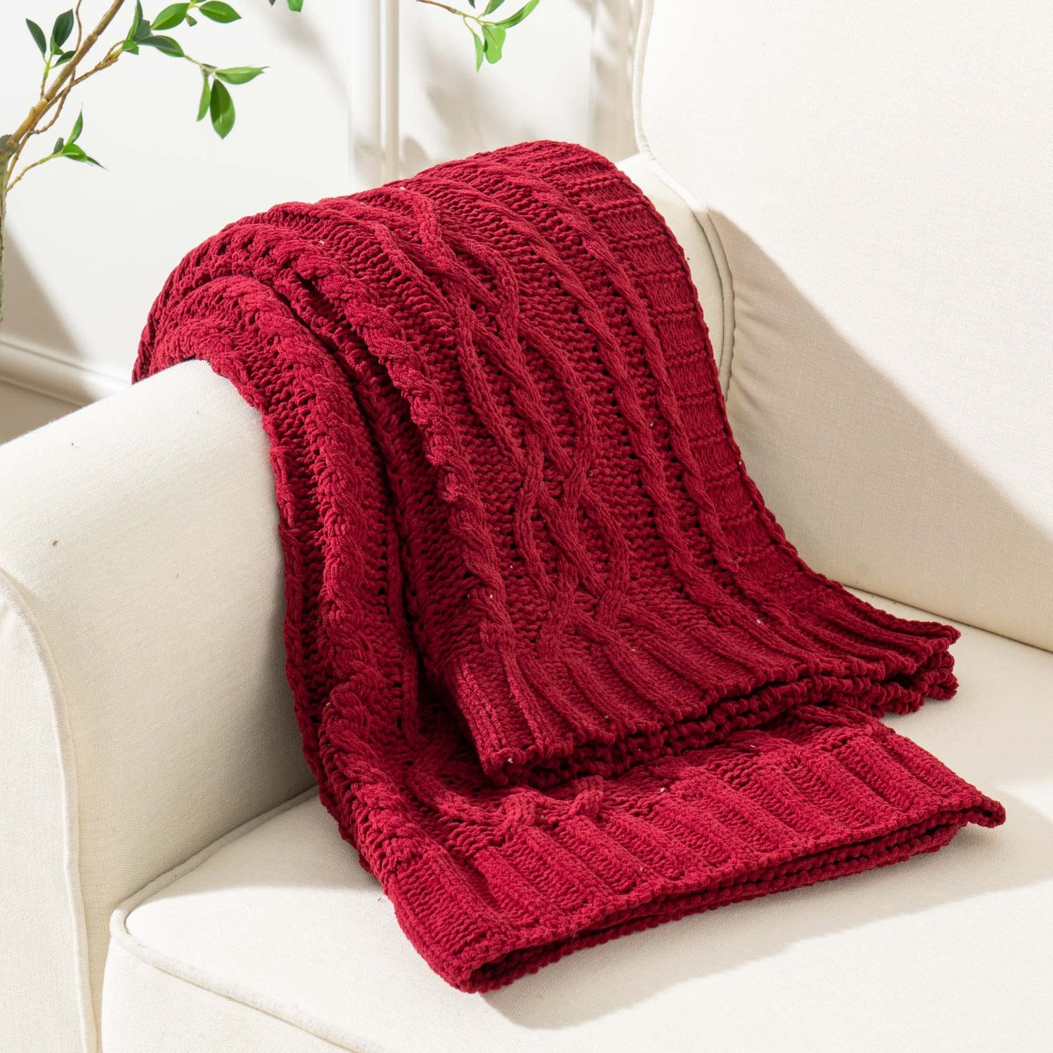 Battilo Christmas Dark Red Throw Blanket for Couch, Bed, Sofa, 51"x67", Woven Chenille Knit Throw Blankets, Gift Blanket, Cozy Warm Decorative Textured Throw Blanket for Living Room
