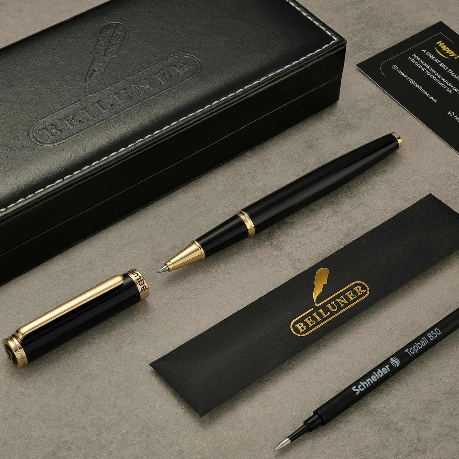 BEILUNER Black Personalized Pen,Stunning Luxury Lacquer With 24K Gold,Schneider Ink Refills,Multiple Fonts To Custom Rollerball,Gift Pen For Men & Women,Executive,Graduation,Christmas,Nice Pens