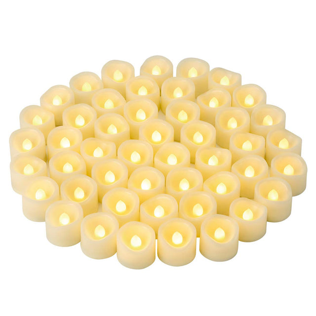 - 48 Long Lasting Battery Included: A package of 48 flickering votive led candles with CR2032 battery included and installed, last for 120+ hours, ready to use and easy to turn on or off with a sliding switch. These long-lasting electronic candles are ideal for Valentines, Easter, Halloween, Thanksgiving, Christmas, Holiday and Anniversary.