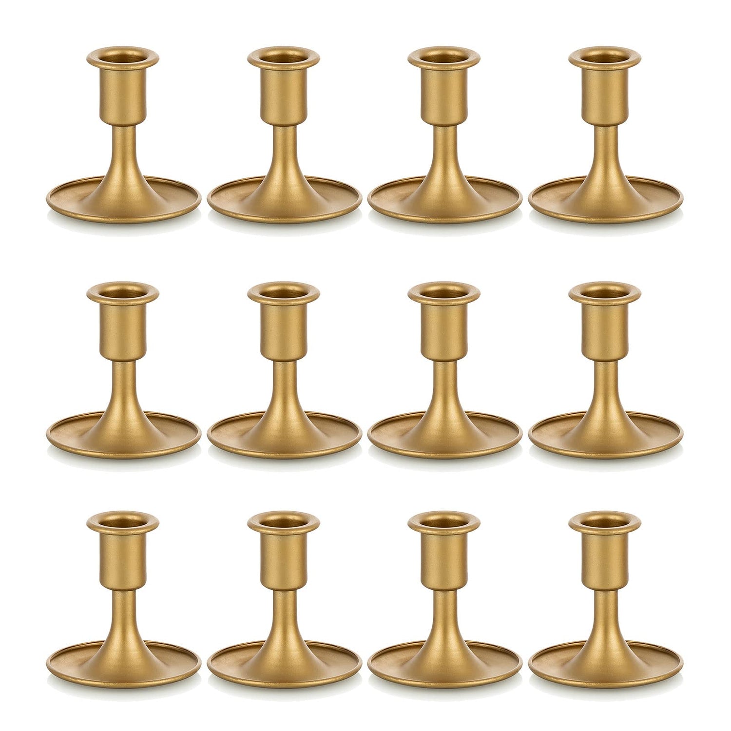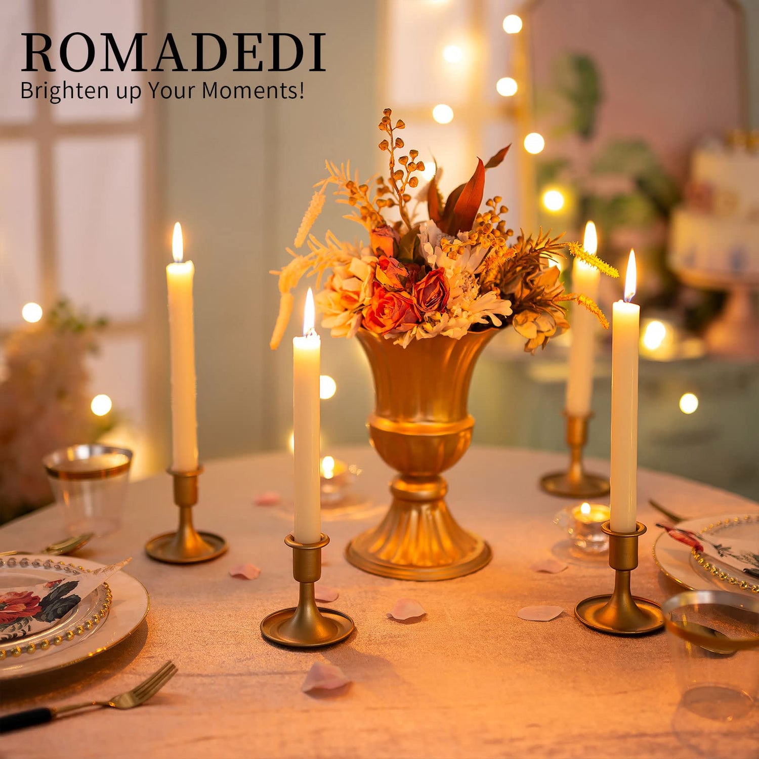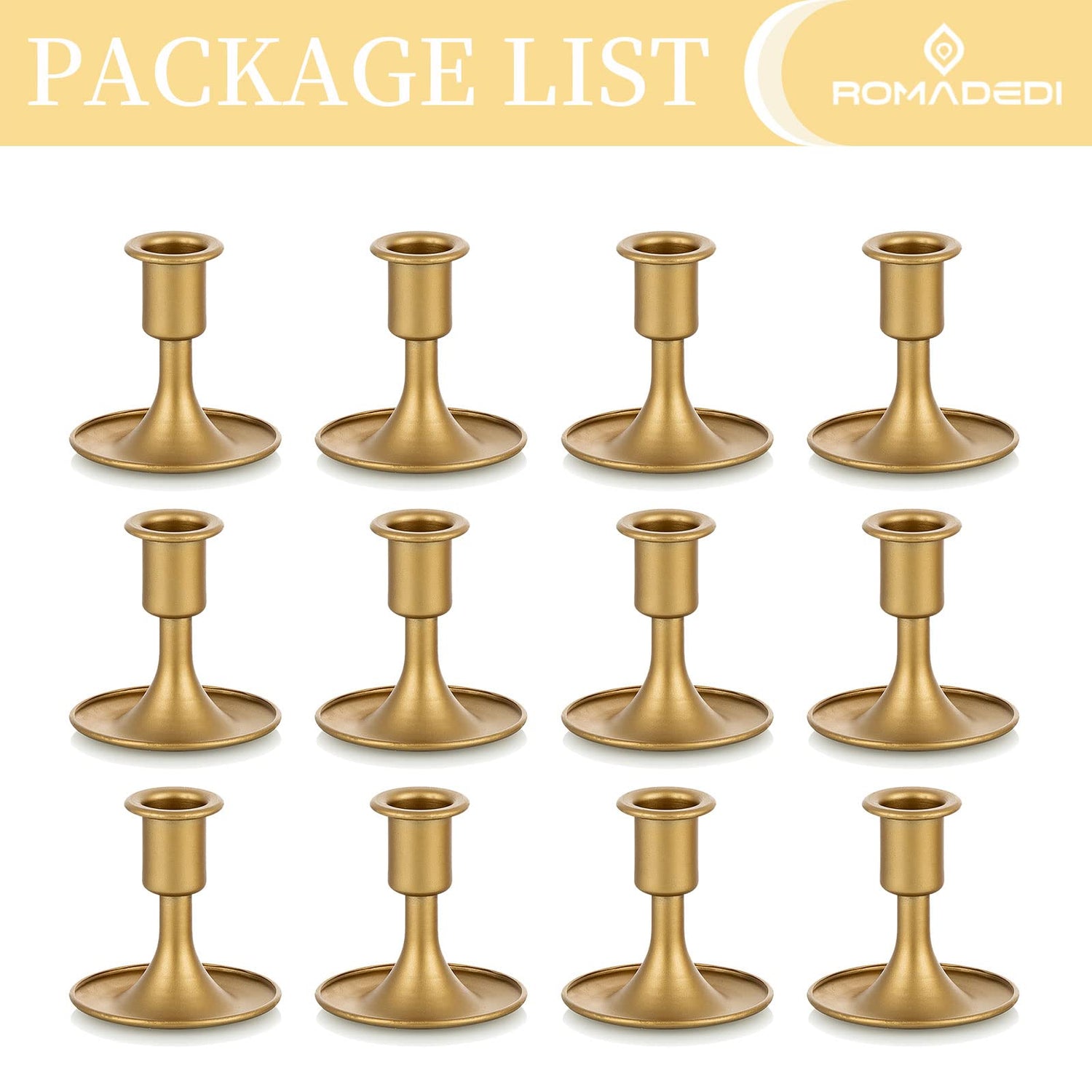Candlestick Holders Taper Candle Holders, Romadedi Gold Candle Stick Candle Holder for Table Centerpiece, Wedding Reception, Festive Christmas Mantel Decoration or Home Decor, Set of 12