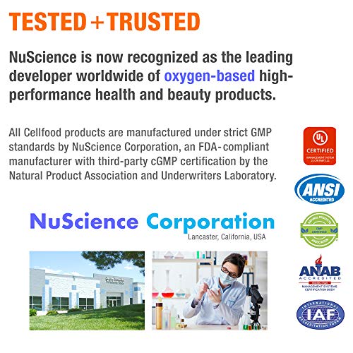 - Tested & Trusted; For over 50 years, Cellfood's proprietary formula has been manufactured by NuScience Corporation in an FDA-compliant facility, GMP-certified by the prestigious Natural Products Association and Underwriters Laboratories