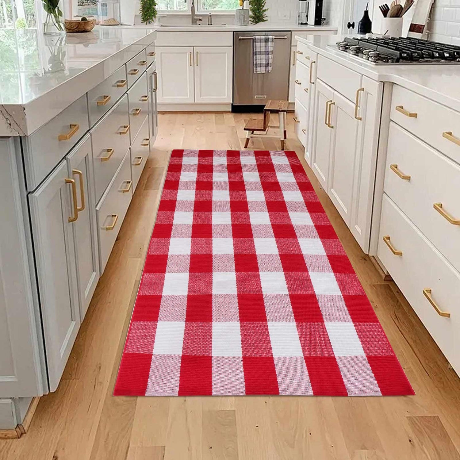 Christmas Red and White Plaid Rug 3 x 5 Ft, Hand-Woven Indoor/Outdoor Layered Cotton Blend Buffalo Plaid Rug, Washable Front Door Mat, Perfect for Porch, Living Room, Entryway is backordered and will ship as soon as it is back in stock.