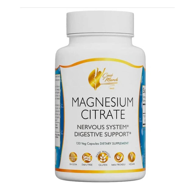 Coco March Magnesium Citrate - Relaxation- Sleep - Nervous & Digestive System Support, Gluten Free, Soy Free, Dairy Free, Keto Friendly, Vegan, 800 mg per Serving, 120 Capsules