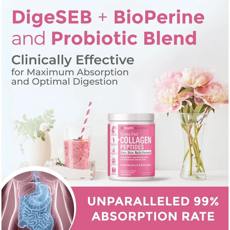 - 99% Absorption Rate: Health Revolution Multi Collagen Protein Powder features DigeSEB Plus and BioPerine for nutrient enhancement, ensuring unparalleled absorption. Triple refined for easy mixing, solves common absorption issues associated with collagen peptides.
