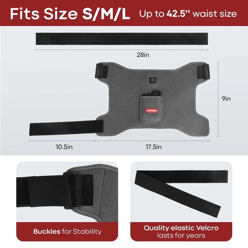 Comfheat Cordless Hip Heating Pad for Hip/Sciatica Pain Relief - 5000mAh Power Bank Included, Heated Hip Wrap for Women, Men, Electric Hip Heat Pad (S/M/L)