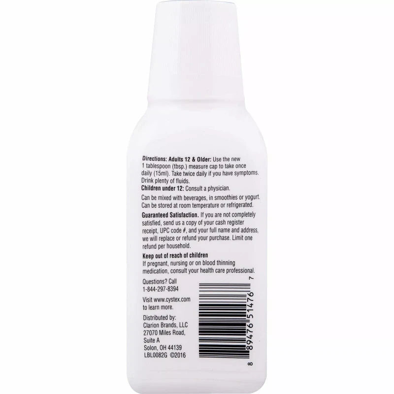 Increasing your urinary health is important, especially if you suffer from recurring urinary tract infections. With Cystex Liquid Cranberry Complex, the vitamin C, D-Mannose and inulin it contains, helps to promote a healthy bladder. By taking just one tablespoon of Cystex daily, you will feel the many benefits as your risk of urinary tract infections decreases and the health of your bladder increases.