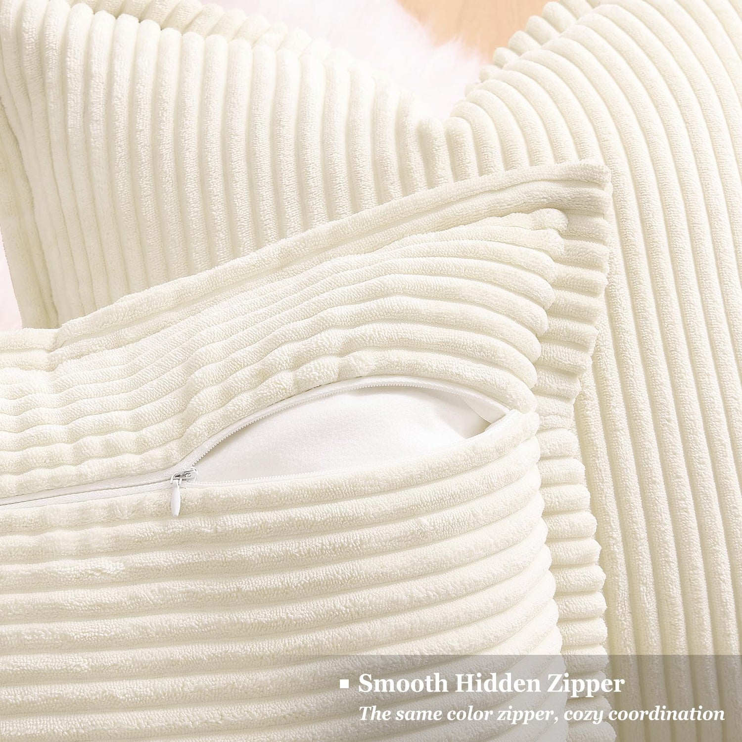 decorUhome Christmas Corduroy Cream White Throw Pillow Covers 22x22 Set of 2 Decorative Soft Boho Farmhouse Euro Couch Pillow Covers for Living Room Bed Sofa Broadside Striped Pillow Cases