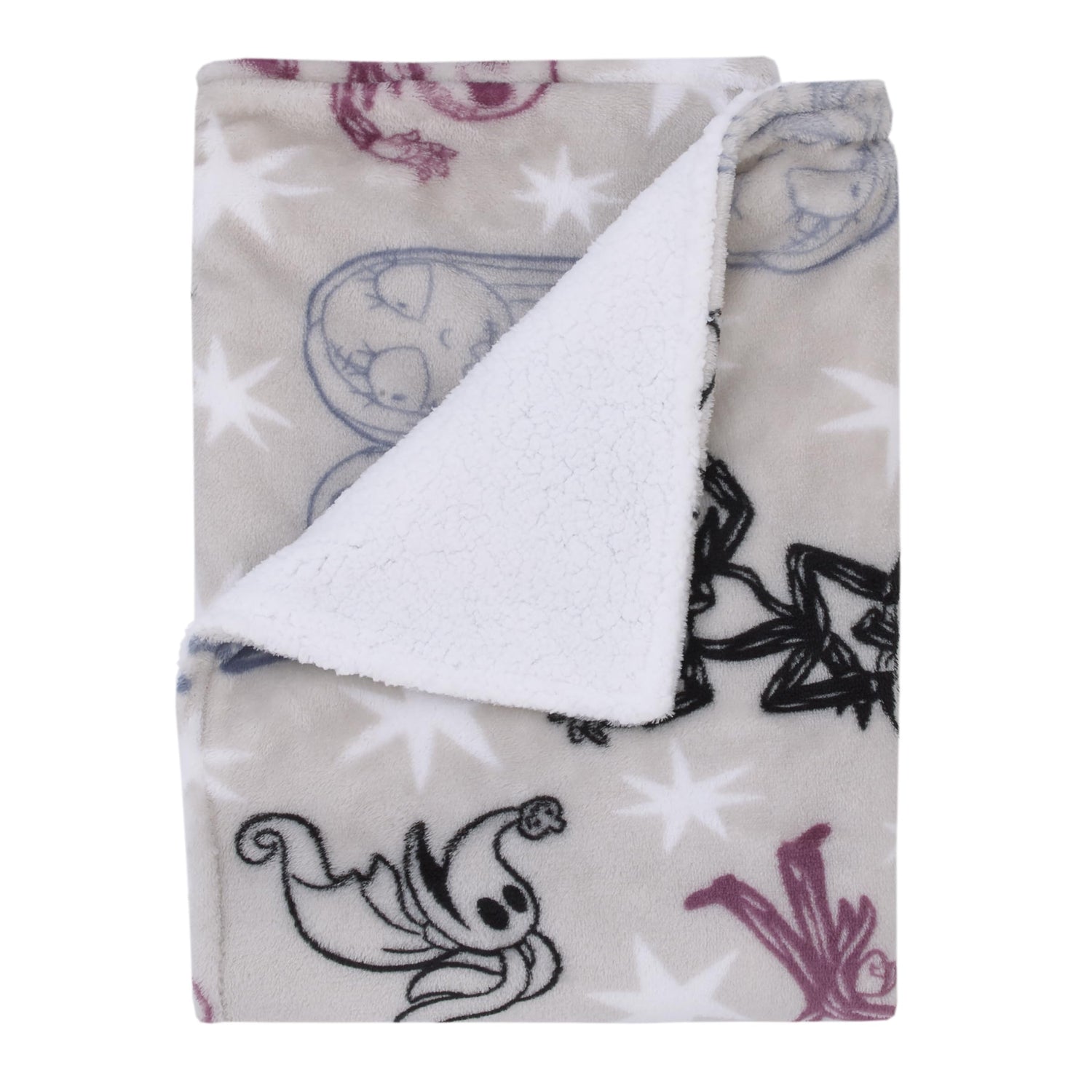Disney Nightmare Before Christmas Gray, Purple, and White Super Soft Sherpa Baby Blanket