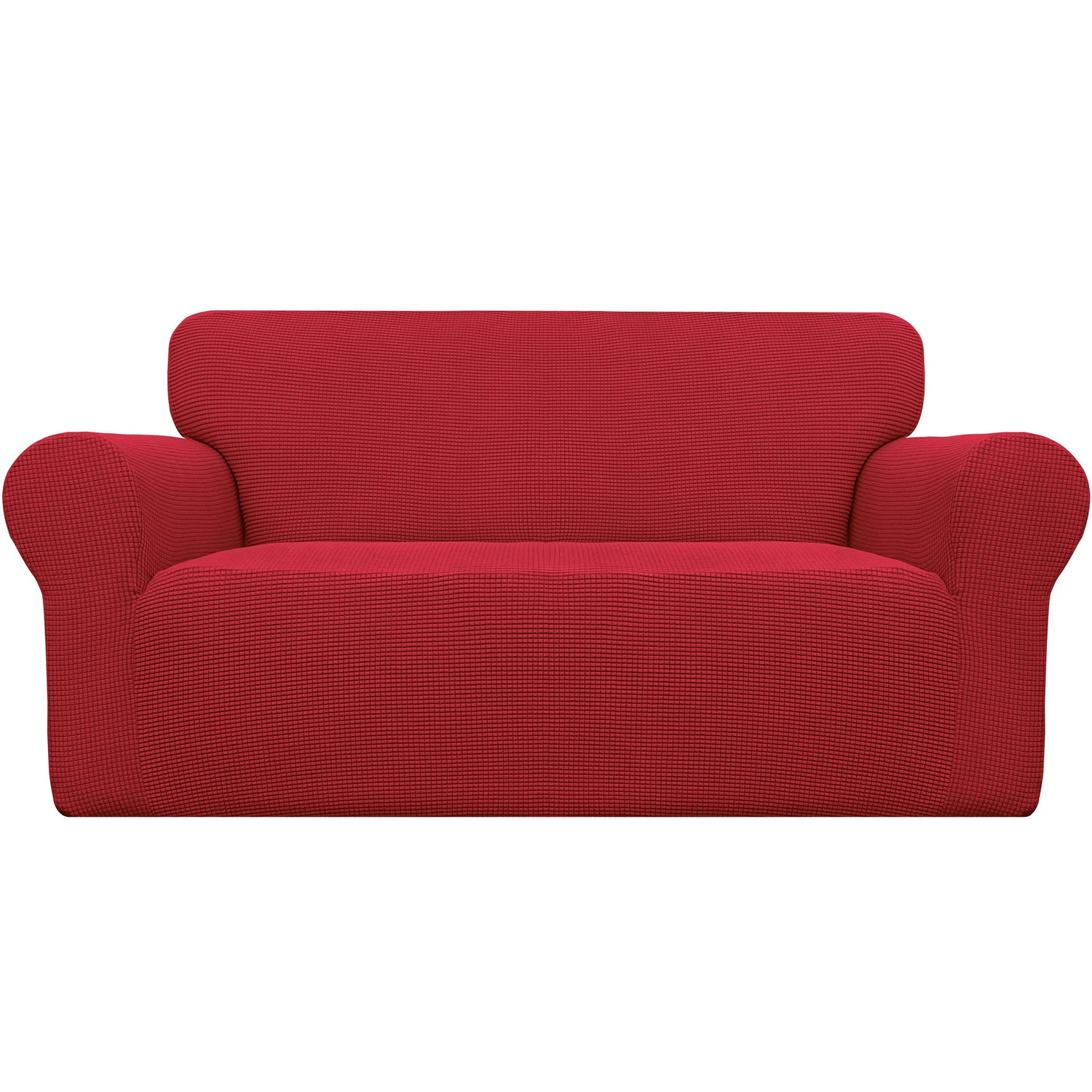 Easy-Going Stretch Loveseat Slipcover 1-Piece Sofa Cover Furniture Protector Couch Soft with Elastic Bottom for Kids Polyester Spandex Jacquard Fabric Small Checks (Loveseat, Christmas Red)