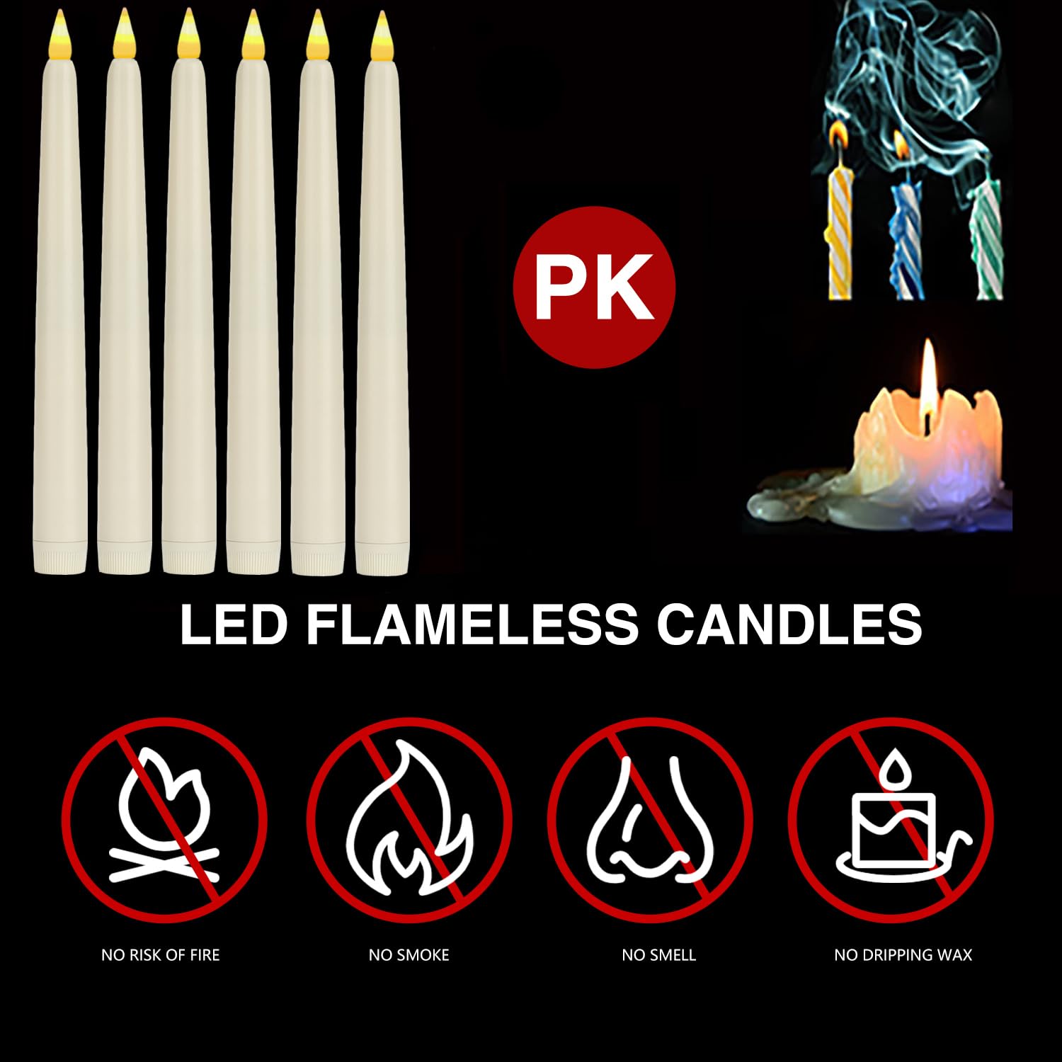 • Safe design: We use flameless taper candles made of plastic, the flickering 3D flame head will make the candle look more realistic, the warm light design really simulates the light source of real wax. The candles are odourless, smokeless, won't melt, don't need to be burned, and have a long life