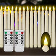 • Packing list: Each kit contains 15 flameless taper candles, two 10-button remote control and an easy-to-follow instruction booklet, batteries are not included (one candle uses 2AA batteries and lasts over 30,000 hours)