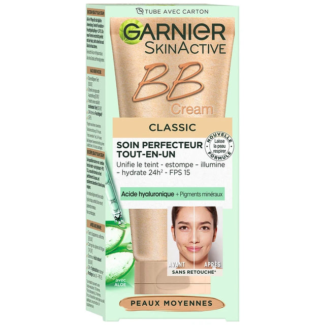 Garnier SkinActive BB Cream - All-in-1 Day Cream with Hyaluronic Acid and Aloe Vera, Conceals Skin Irregularities, SPF 15, Classic, Medium, 50 ml