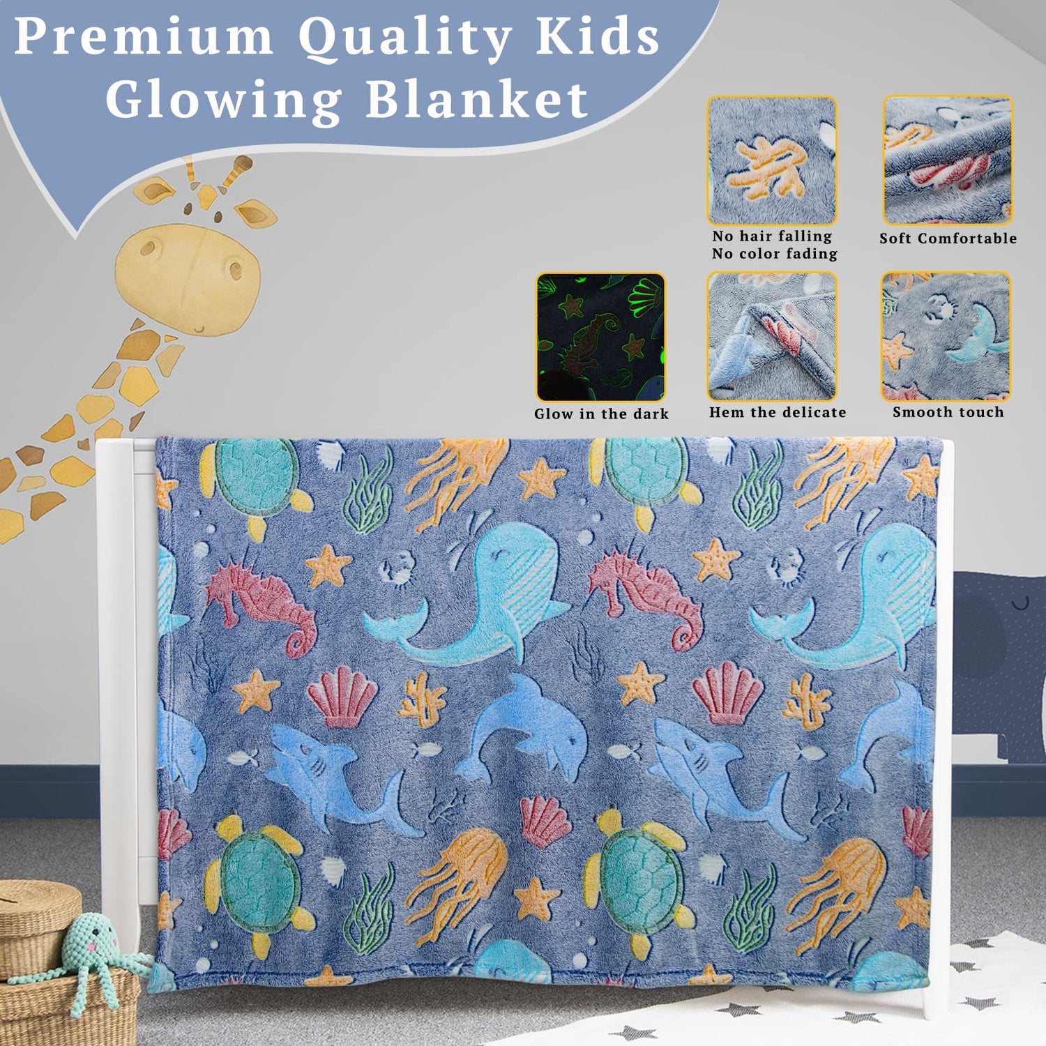 Gifts for Boys Ocean Glow in The Dark Blanket for Girls Kids Turtle Fish Soft Throw Blanket for Couch Bed Birthday Christmas 50" x 60"