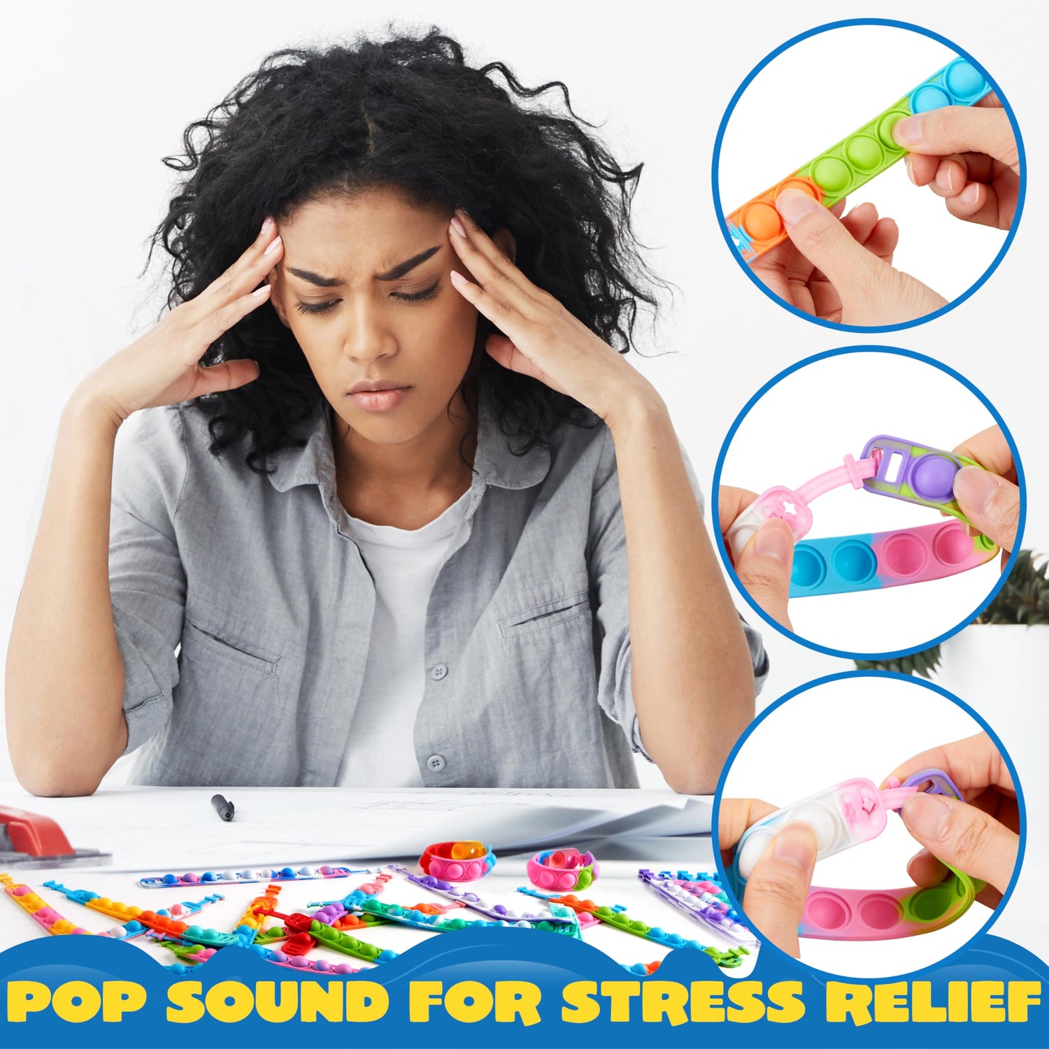 - Fun Fidget Toys for Kids & Adults: This pops set is not only suitable for kids, but also good for adults to relieve anxiety. They are great fidget bracelets for adults, kids and anxiety, decrease depressions, more concentrate and focus on working