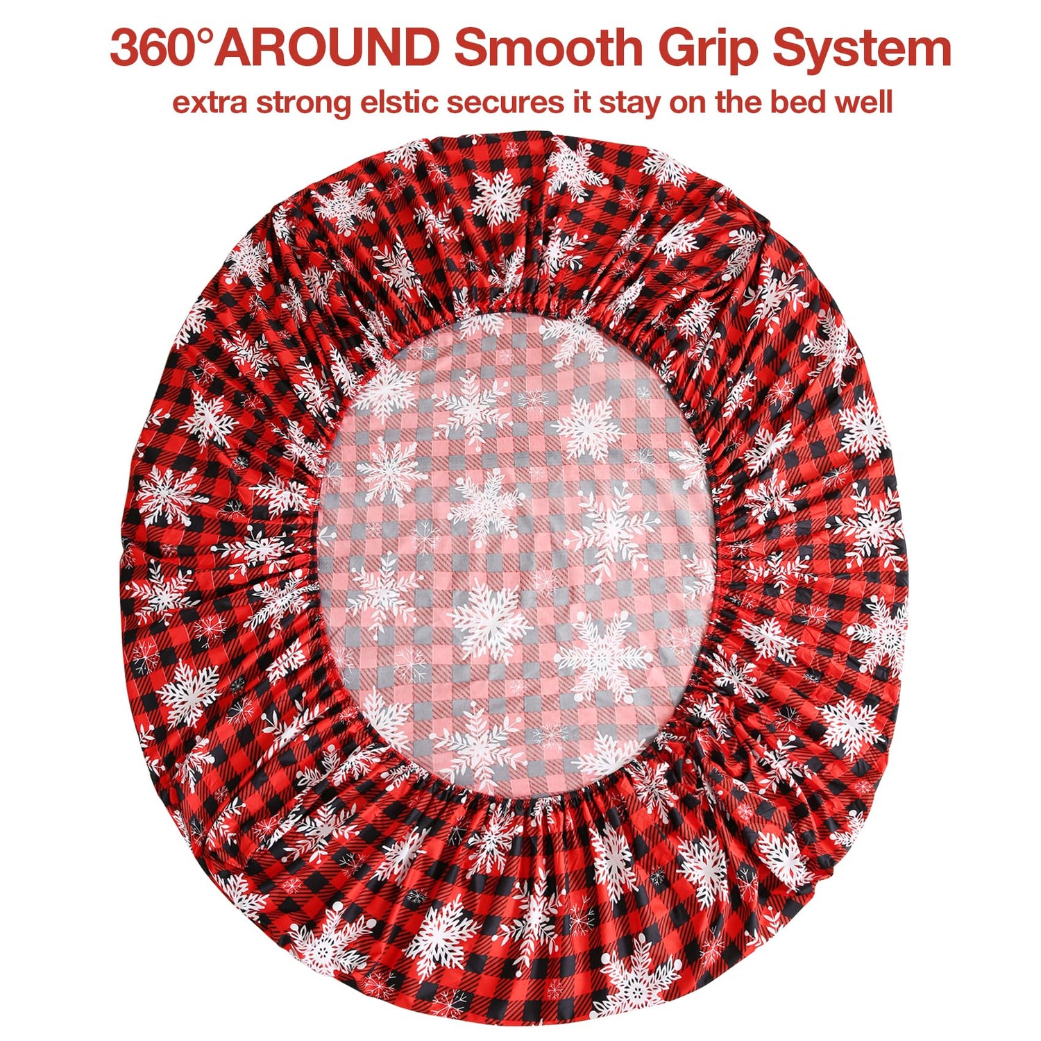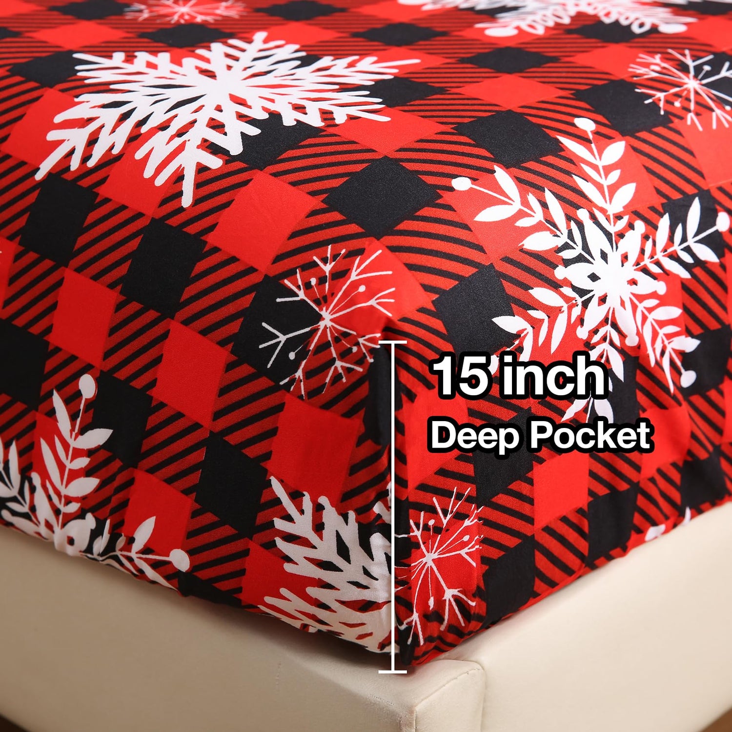 JSD Red Buffalo Plaid Snowflakes Sheet Set Queen Size, 4 Piece Christmas Winter Microfiber Bedding Sheets Extra Deep Pocket