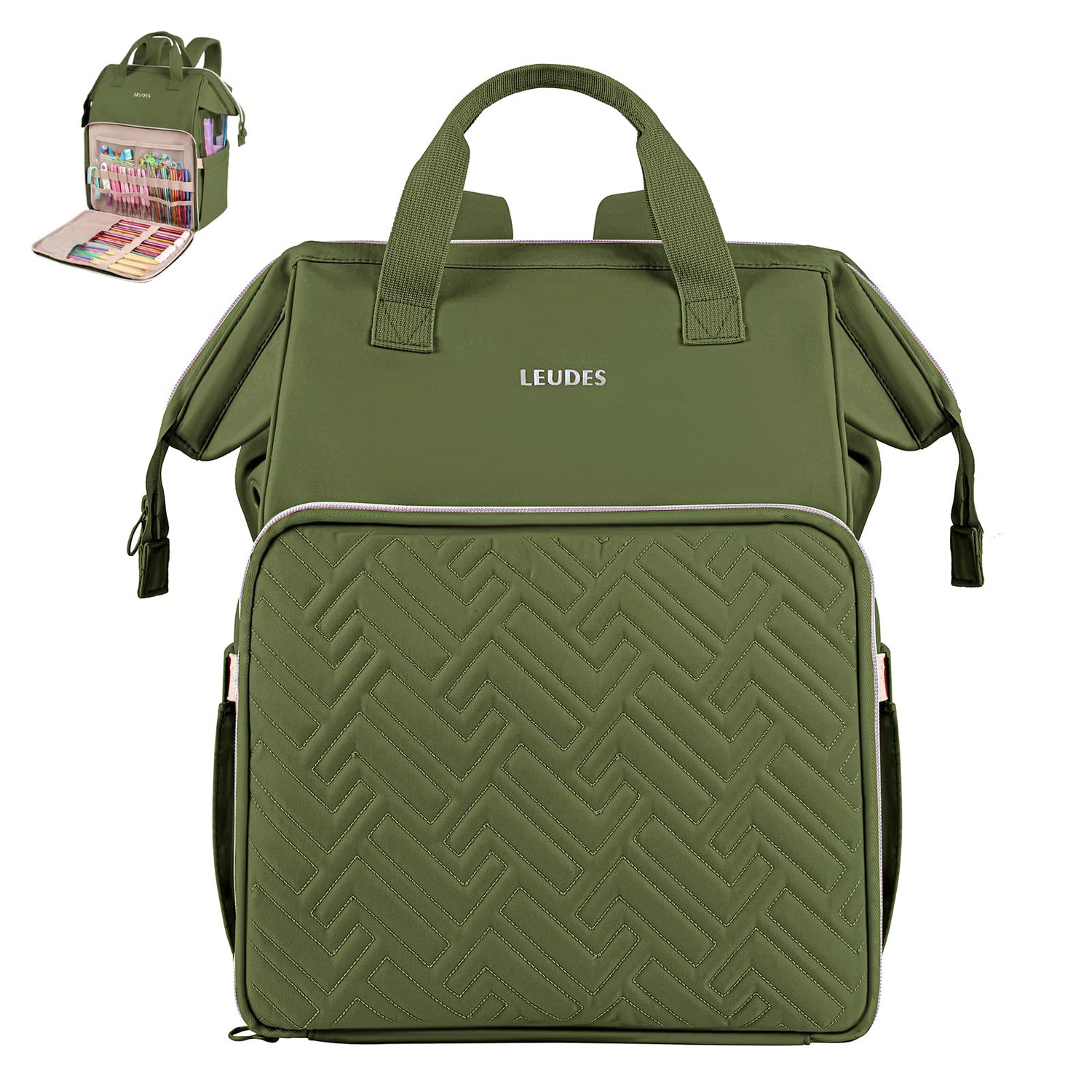 Leudes Knitting Bag Backpack,Yarn Storage Organizer Large Crochet Bag Tote Christmas Gift Yarn Holder Case for Carrying Projects,Knitting Needles (Army Green)