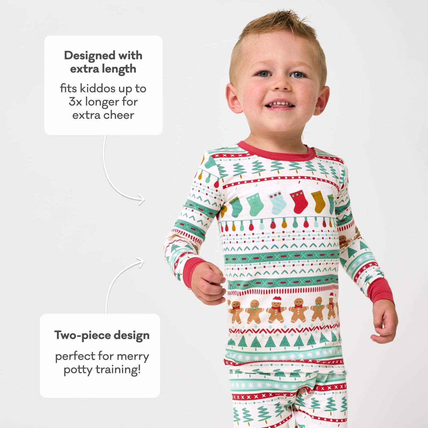 Little Sleepies Two-Piece Kids Christmas Pajamas Set for Boys & Girls, Viscose from Bamboo, Family Matching Christmas PJs, Fair Isle, 5-6