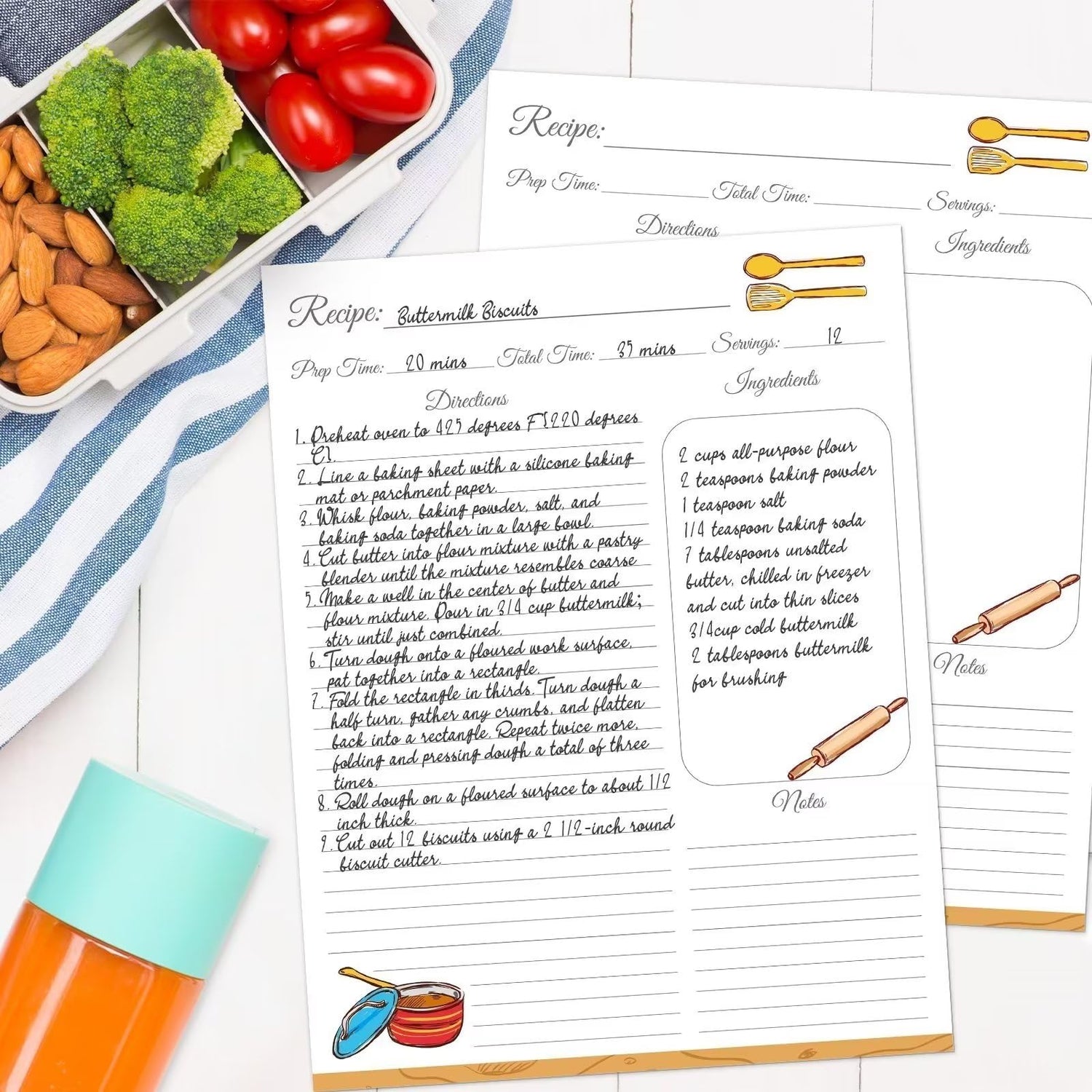 - Full Page Design - Each blank recipe book binder measures 11.6" x 10.6" to safely fit full page 8.5"x 11" sheets of paper. The double-sided recipe card has plenty of room to record extra details of your recipes.