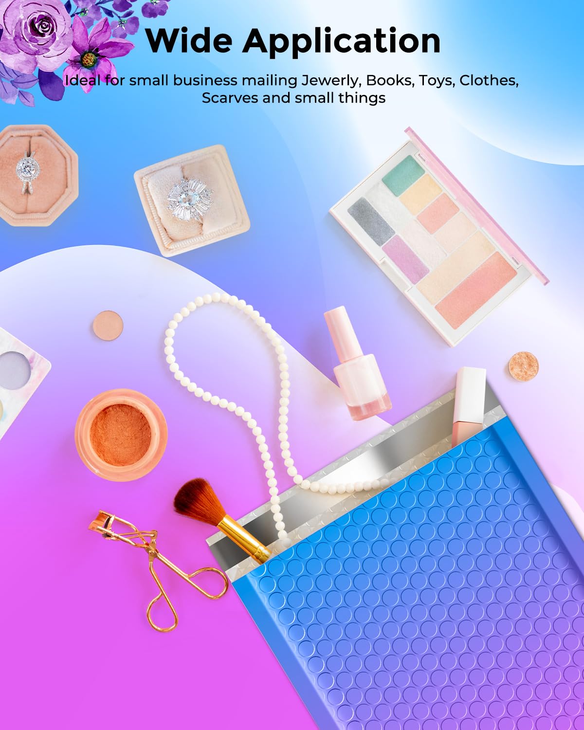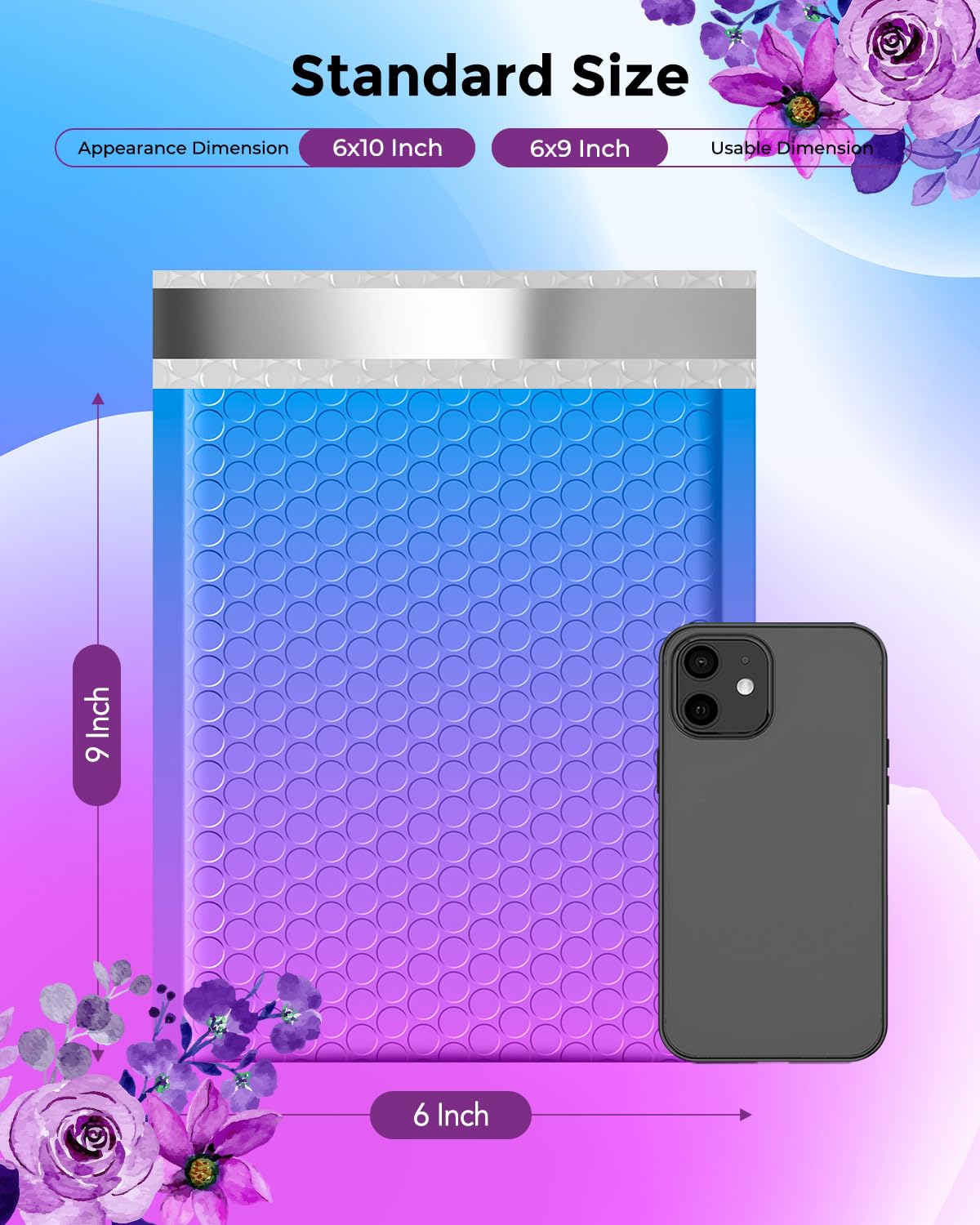 Metronic Bubble Mailers 6x10 Inch 100 Pack BluePurple Usable Size 6x9" Pretty Bubble Mailer Waterproof Padded Envelopes for Christmas Gift Packaging, Mailing, Shipping, Small Items Bulk