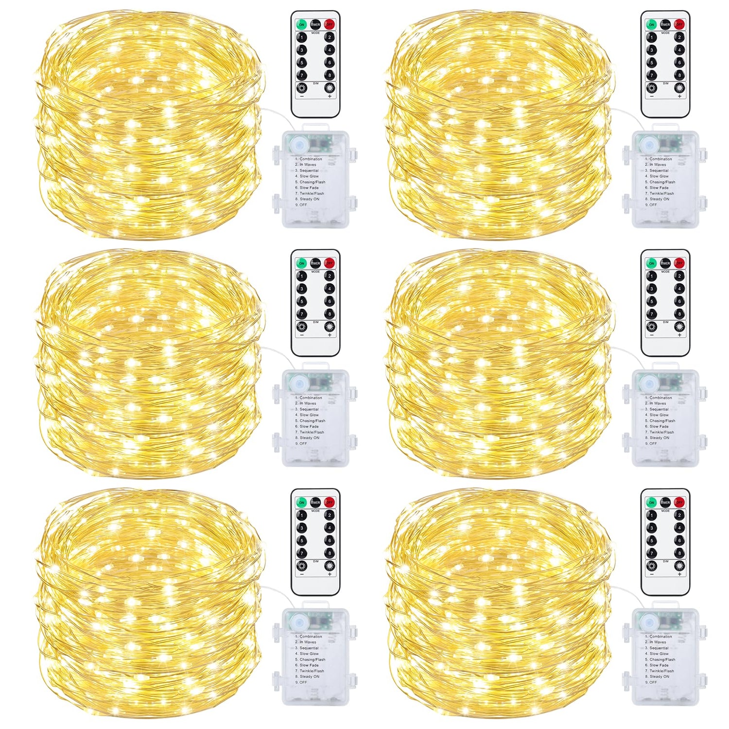 Mlambert 6 Pack 33FT Fairy Lights Battery Operated with Remote and Timer, Dimmable Waterproof 8 Modes Light for Bedroom Dorm Christmas-Warm White