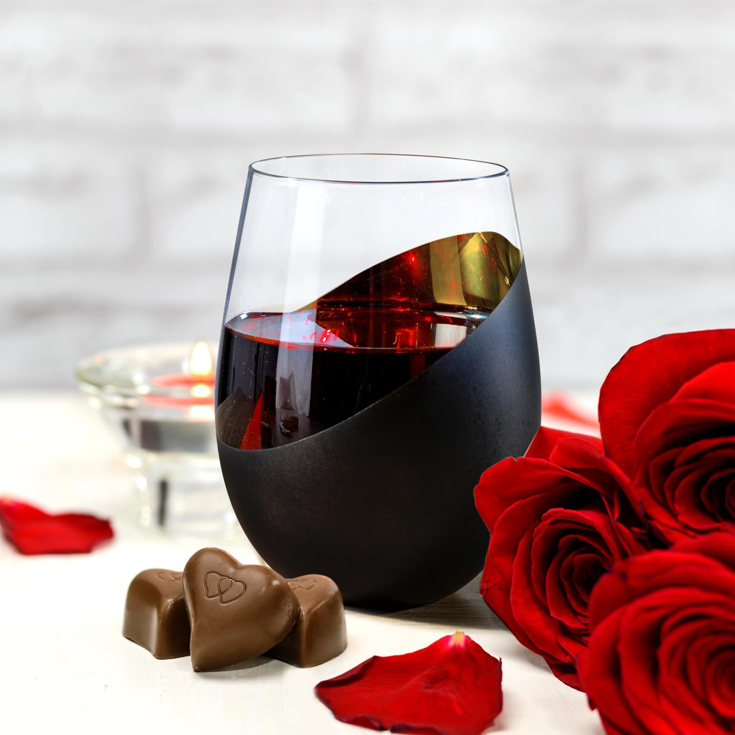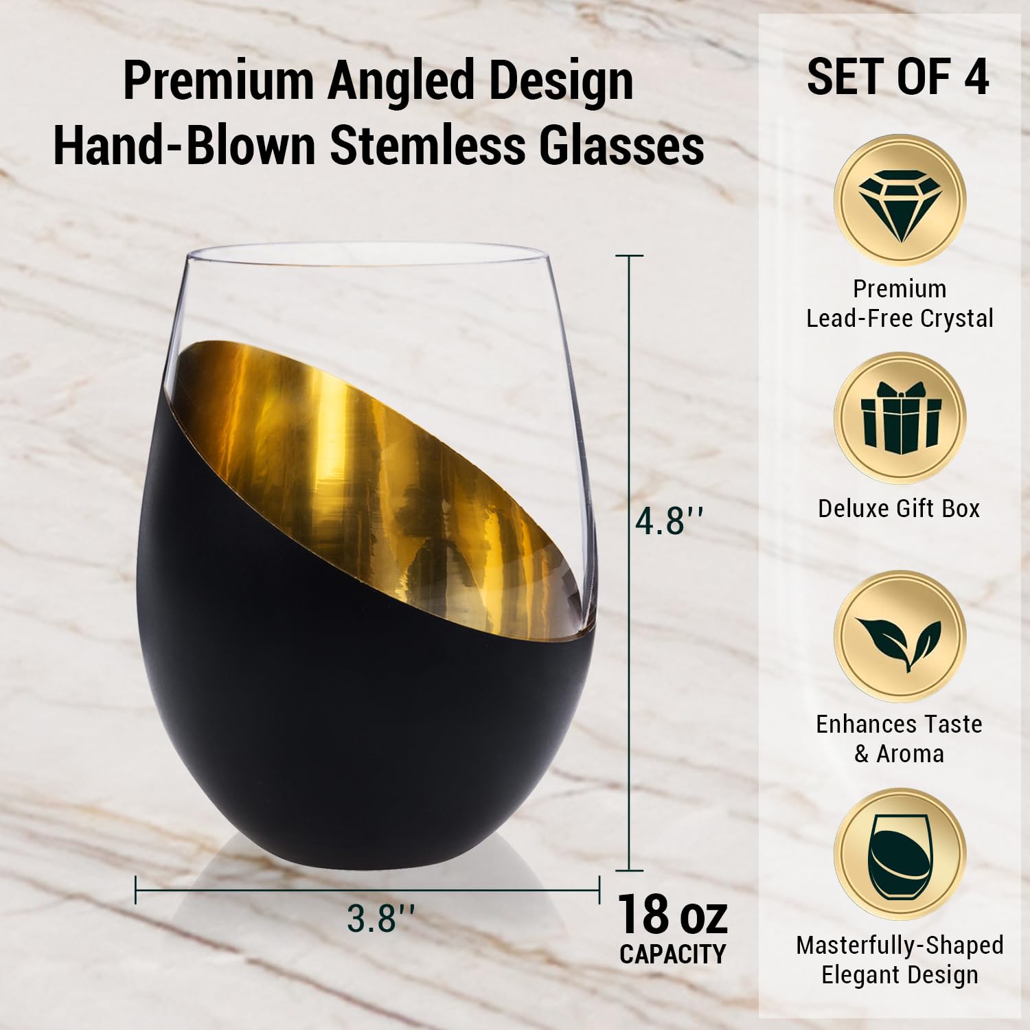 MyGift Black and Gold Stemless Wine Glasses Set of 4 - Elegant Christmas Gift Set with Luxe Metallic Finish, 18oz Modern Barware