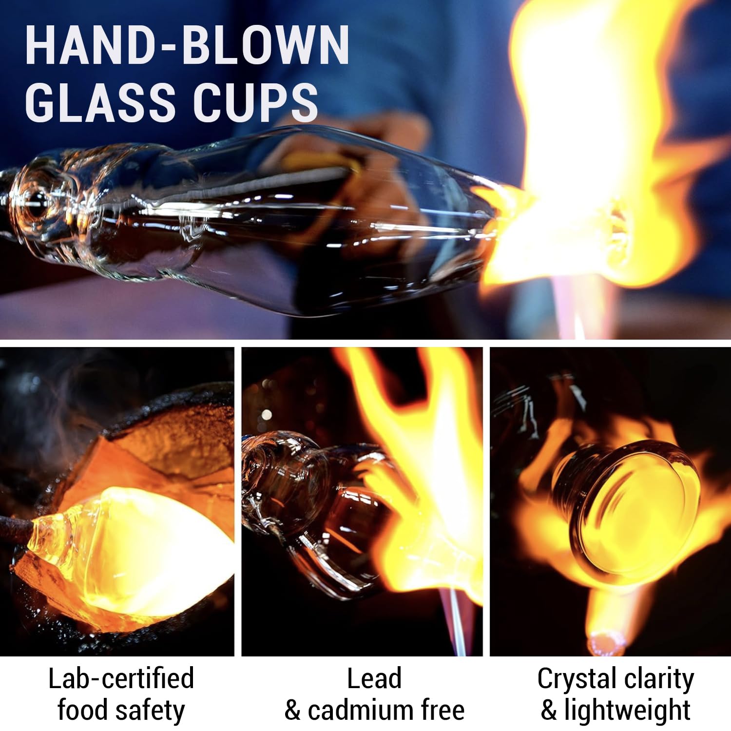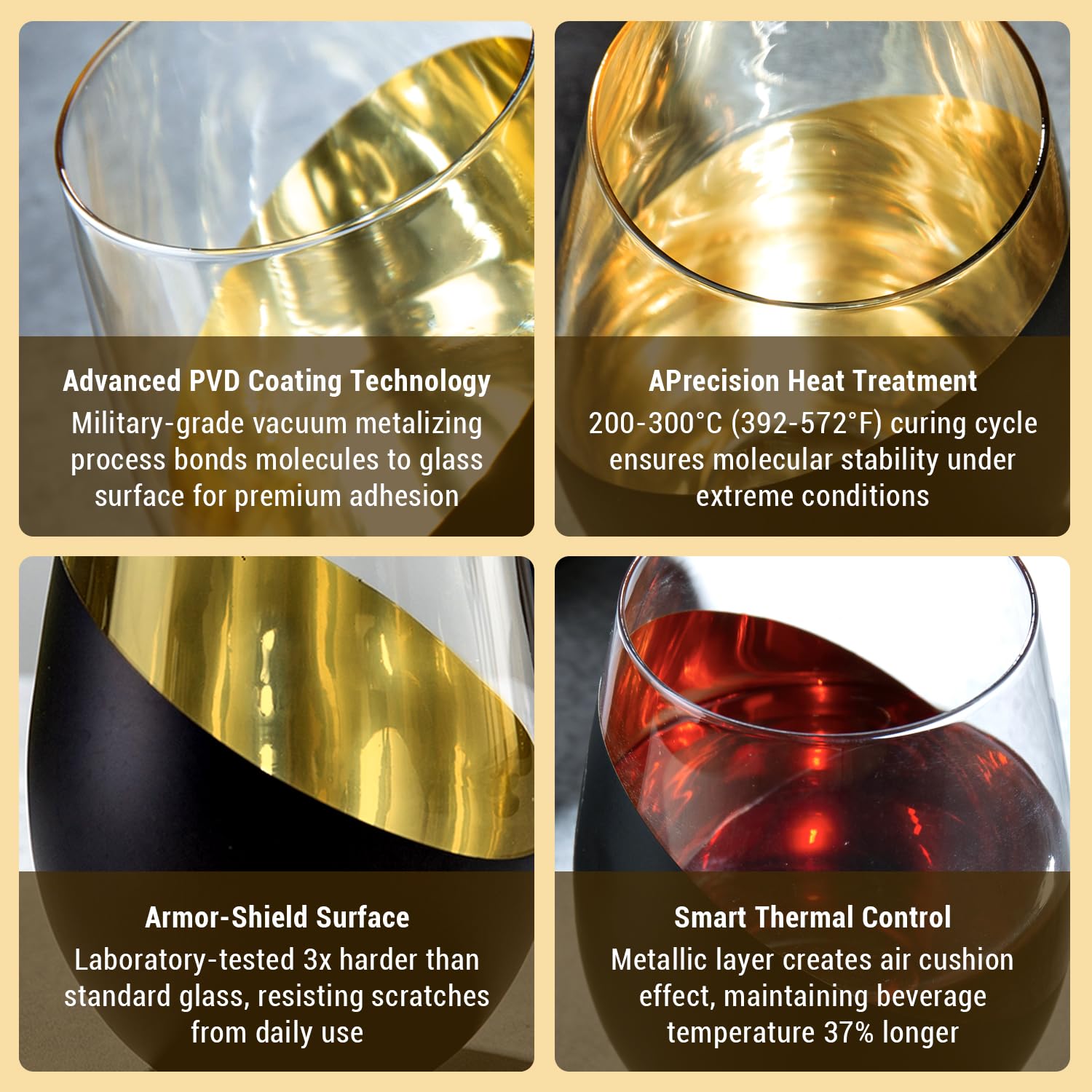 • 3. Thoughtful Design Details Weighted copper base prevents tipping (20% heavier than standard) Stemless design minimizes breakage during entertaining Lead-free crystal glass with smooth rim for comfortable sipping