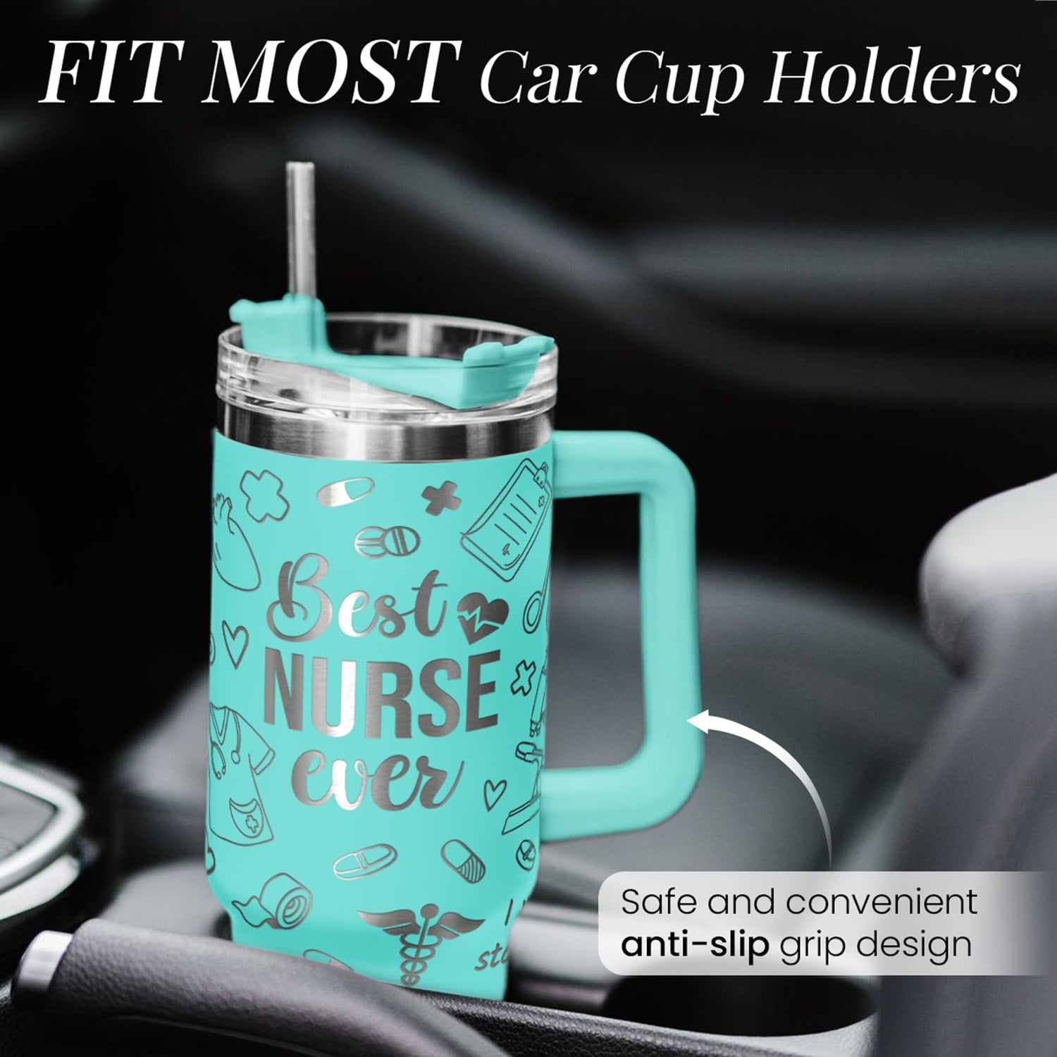 Nurse Gifts for Women, Nurse Tumbler with Handle 40oz Stainless Steel Coffee Cup with Straw Lid, Nursing Gift for Female Nurses, Appreciation Gift for Graduation Christmas Birthday