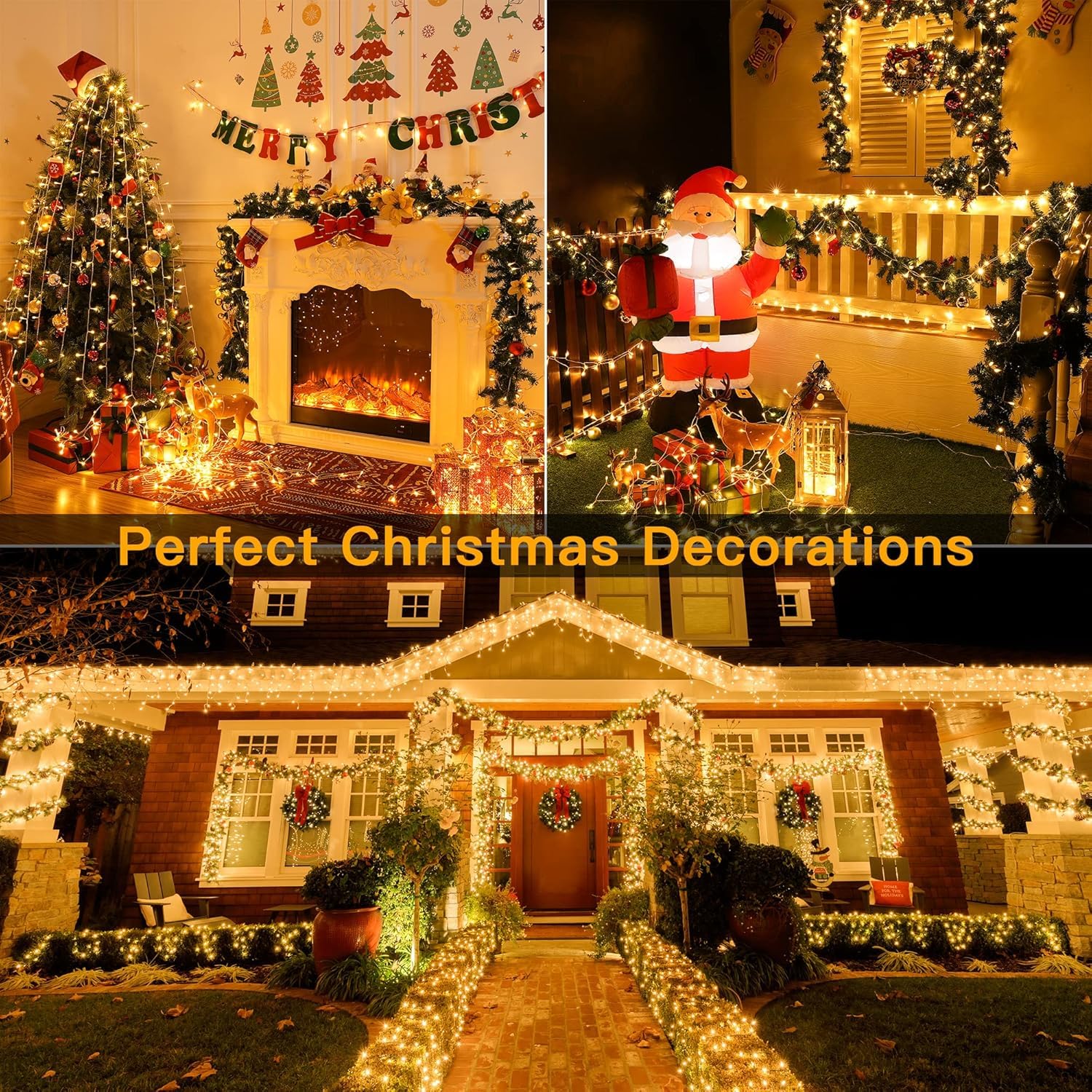 Ollny Christmas Lights Outdoor 400LED 131FT, Warm White Fairy Lights with Remote 3 Timer, Plug in 8 Modes String Lights for Bedroom Indoor Outside House Party Xmas Decorations
