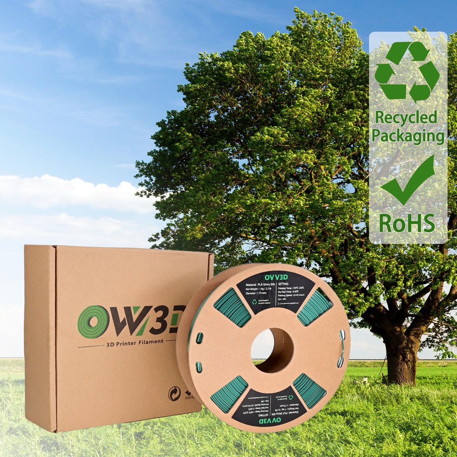- 【ECO Packaging】Instead of plastic spools, we use paper spool and paper box to package PLA filament. Protecting the environment is the responsibility of each of us. The PLA filament is vacuum packed with high quality desiccant to keep dry.
