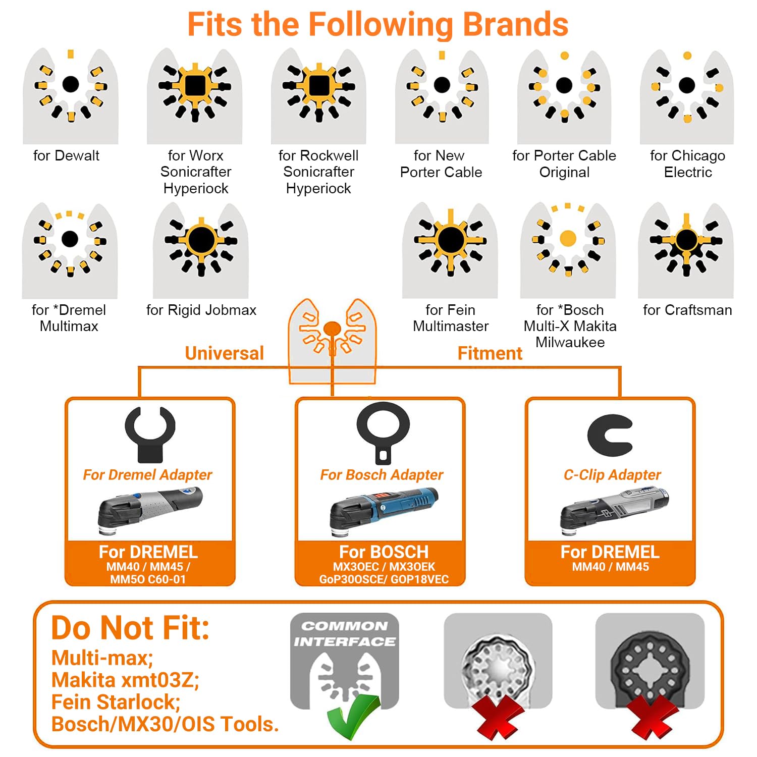 - Wide Compatibility: These oscillating diamond blades are compatible with most major brands, fits more numerous multi tool blades kits wood and metal, well compatible with most brand oscillating tools.