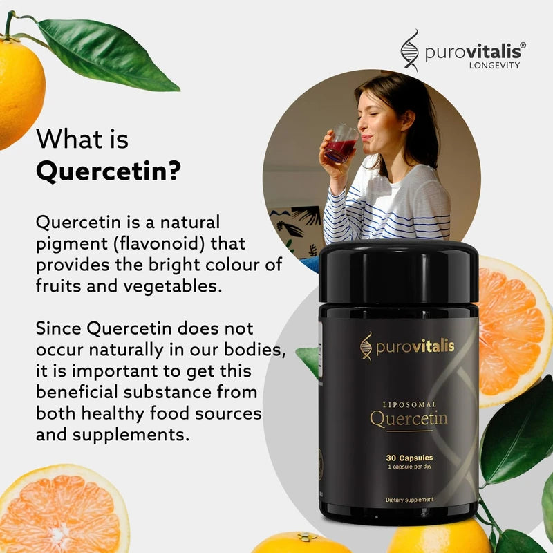 PUROVITALIS Liposomal Quercetin 125mg, 30 Servings (30 Vegan Capsules), High Purity Anti-ageing, Antioxidant Supplement